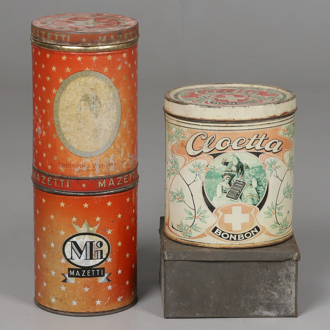 4308166. BLECHDOSEN, Cloetta, Mazetti usw., 4 Stück.