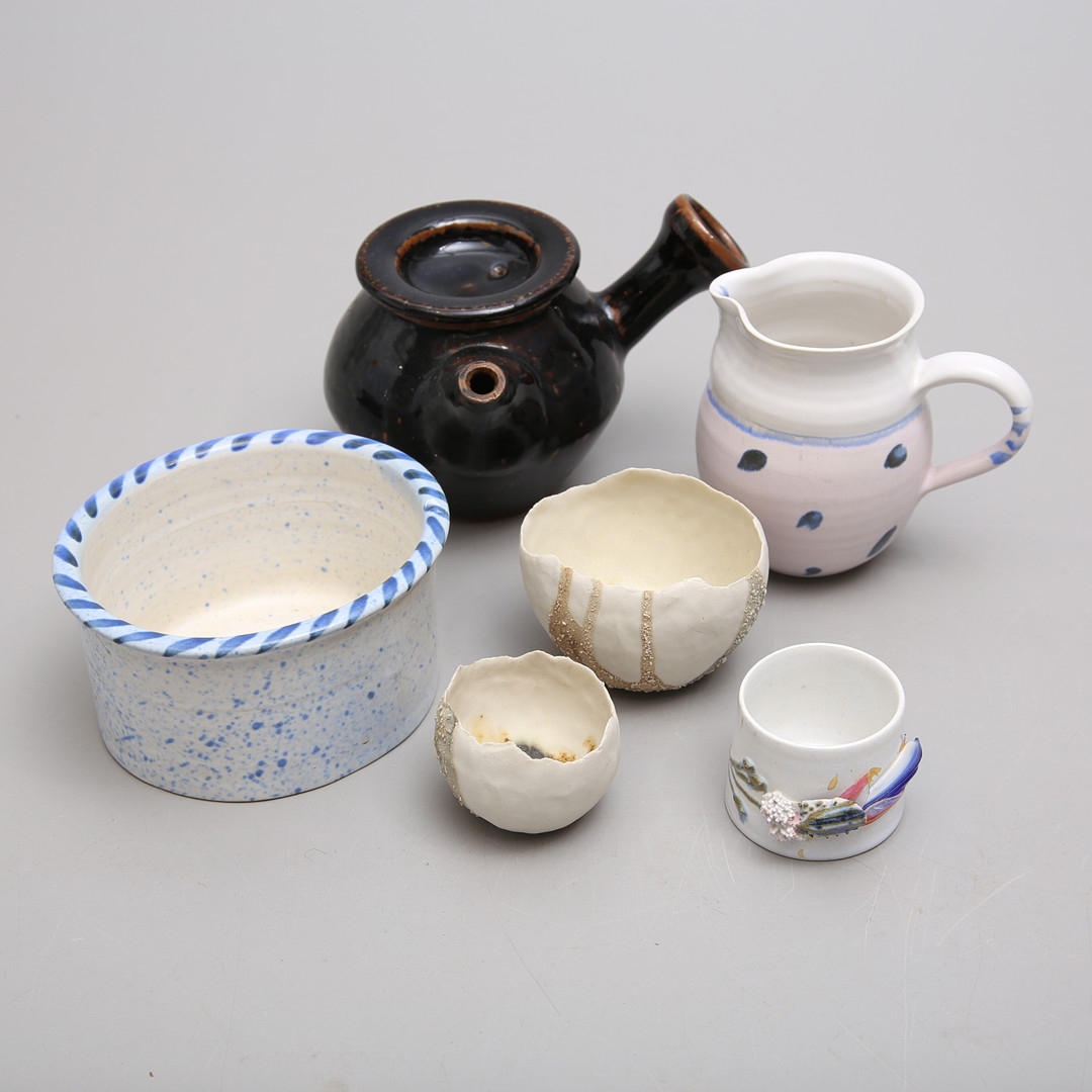 4308375. Ein Set von 6 Keramikobjekten, verschiedene Keramiken.
