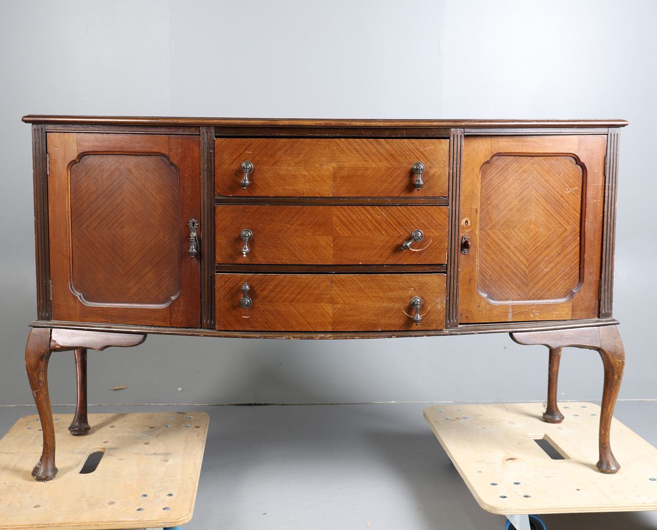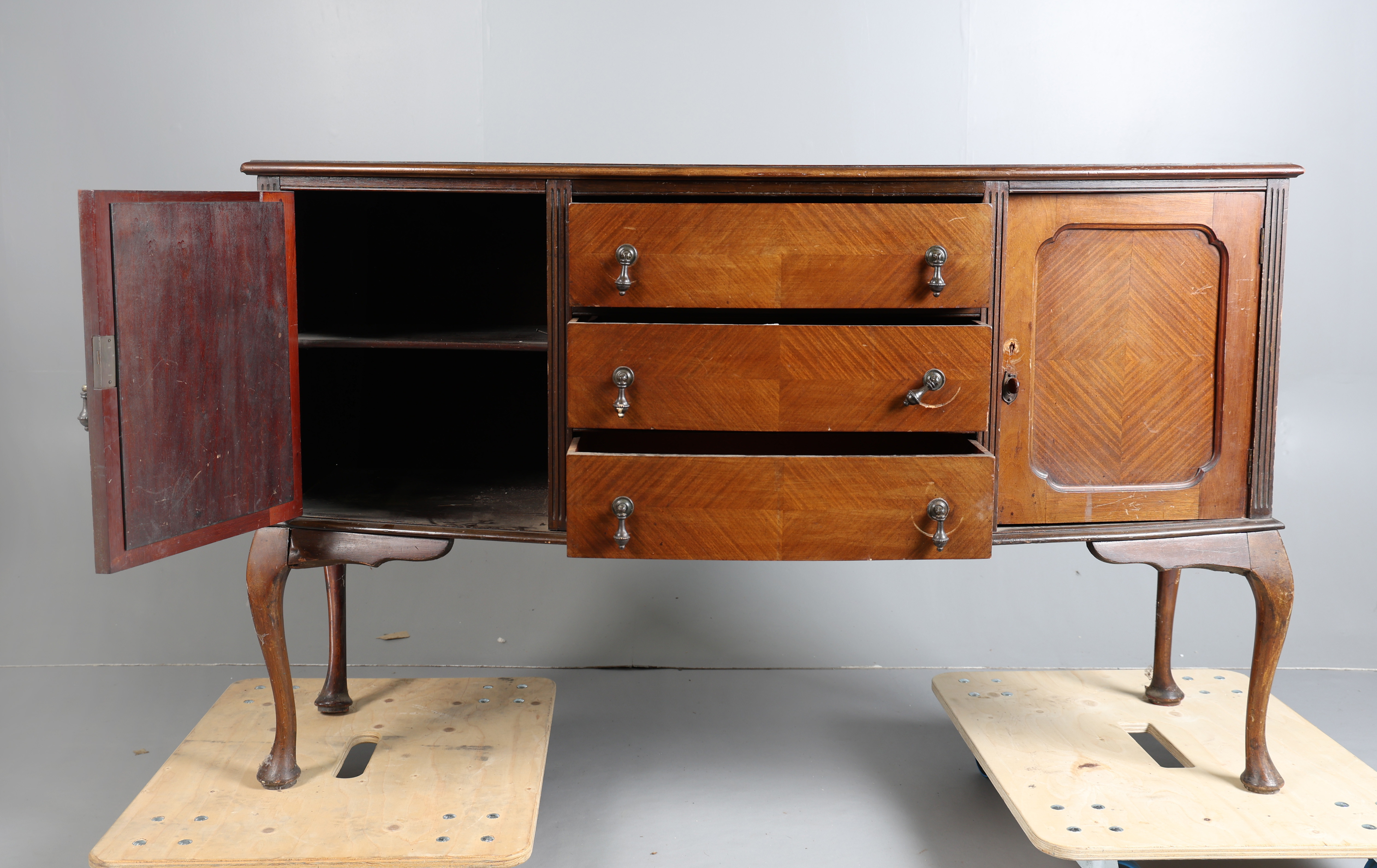4309033. EIN MAHAGONI-SIDEBOARD MIT BOGENFRONT AUS DEM 20. JAHRHUNDERT.