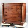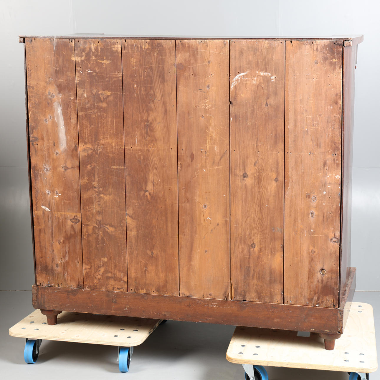 Mit drei kleinen Schublade über drei langen Schublade unten, erhöht auf dem Sockelsockel, 133,5 cm breit, 125 cm hoch, 62,5 cm tief.