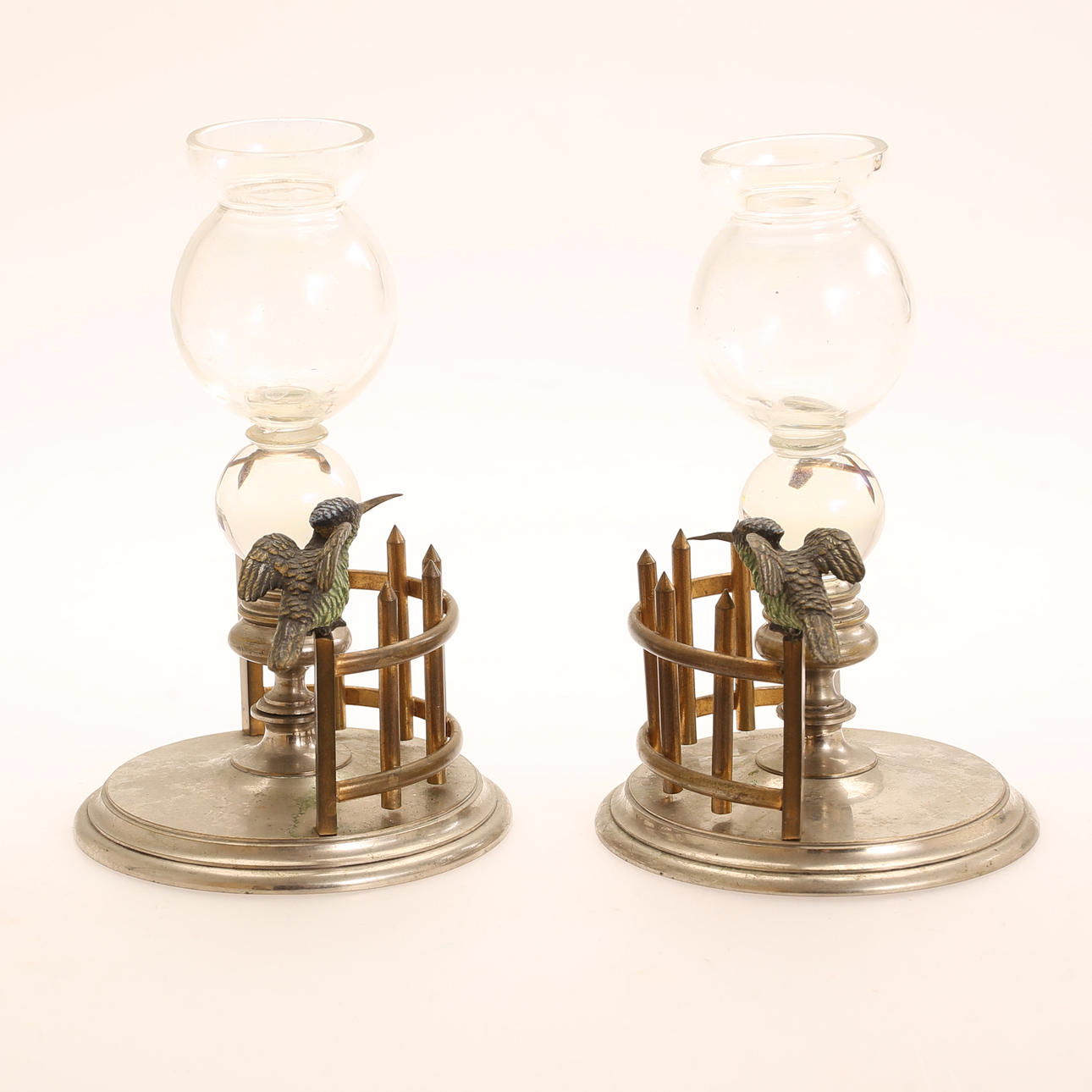4311062. VASEN/KERZENHALTER, 2 Stück, Wiener Bronze.