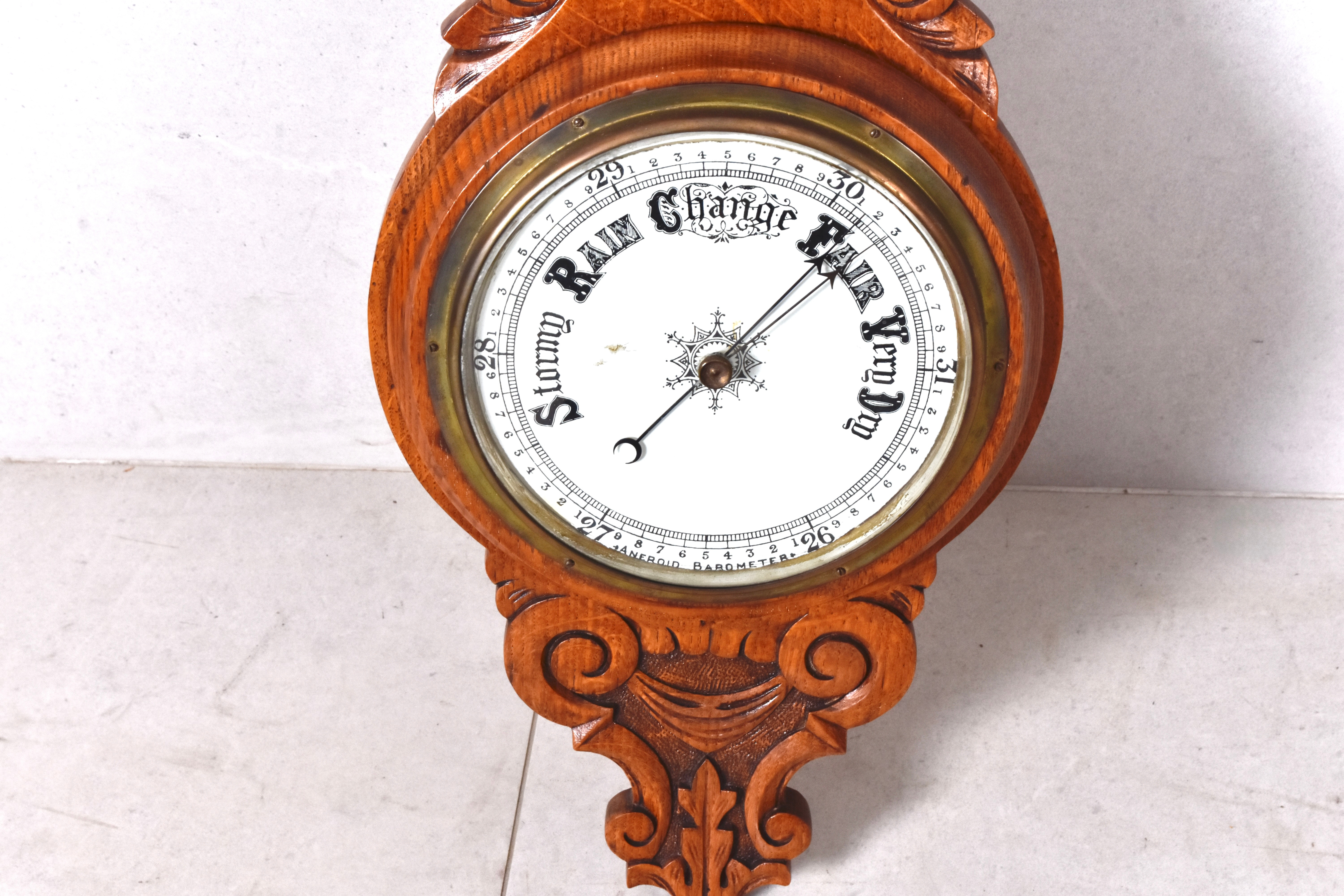 4311217. Barometer, Aneroid, Eiche, um das 20. Jahrhundert.