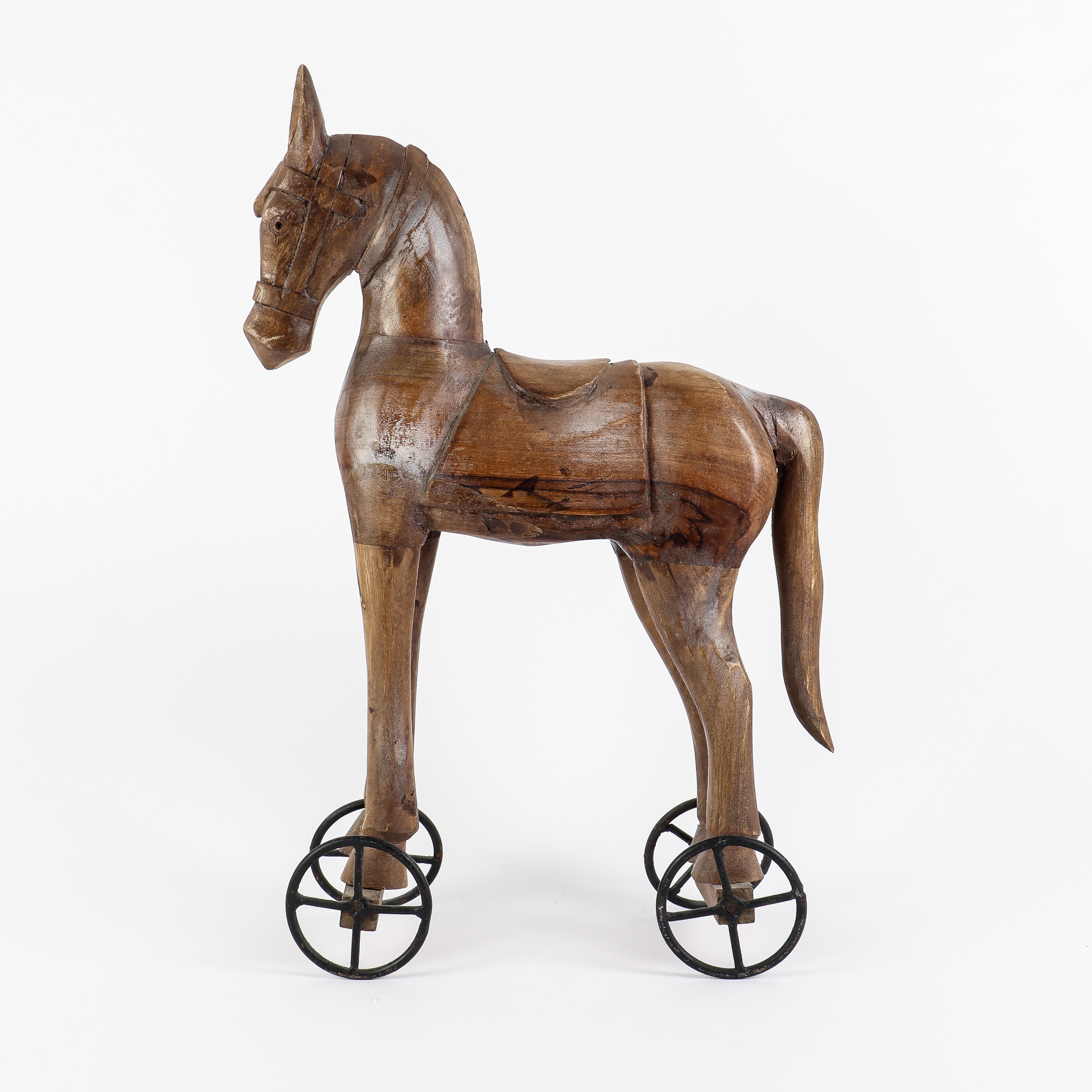 4311310. PFERDEHOLZ MIT METALLRÄDERN.