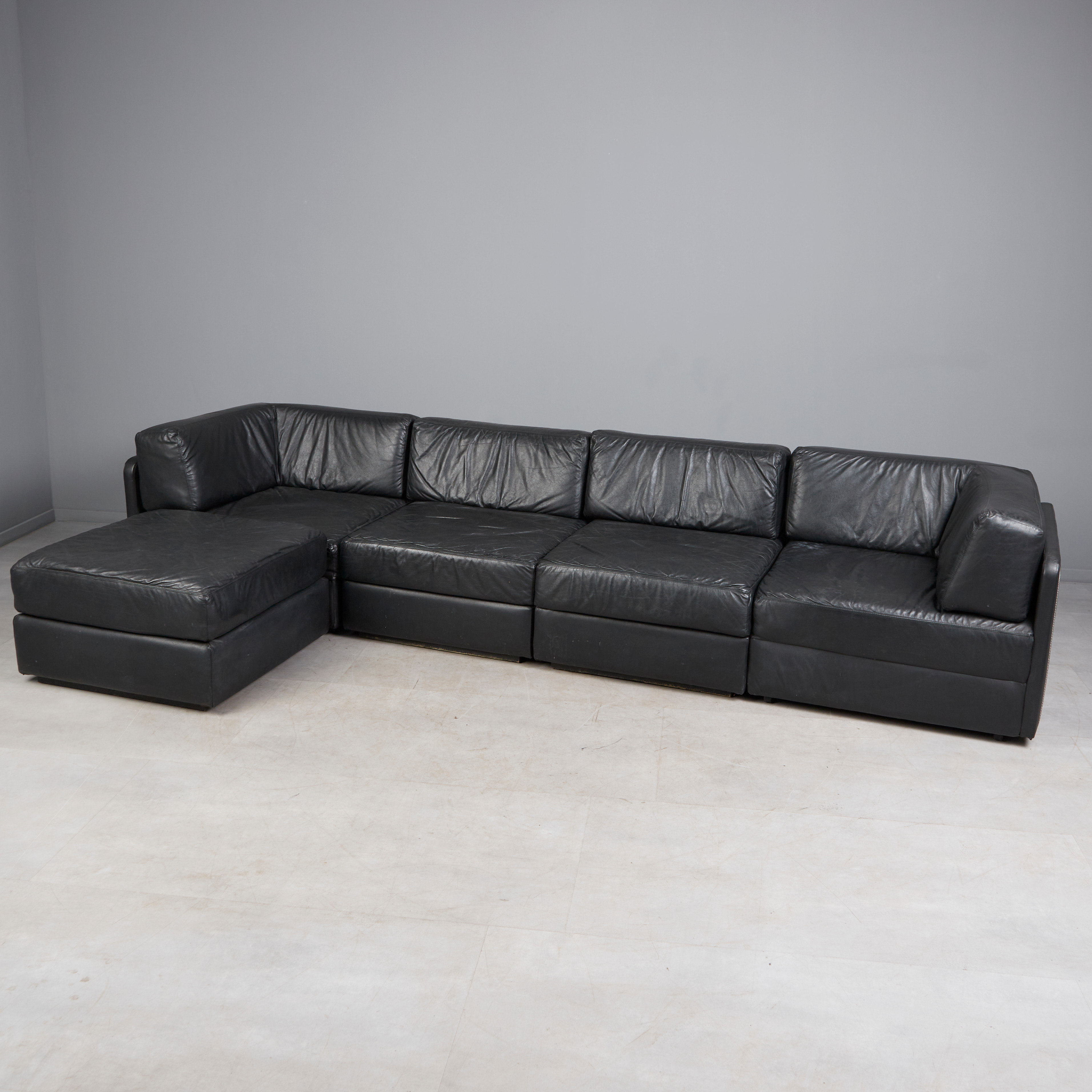 4311683. Fünfteiliges Modulsofa / Ecksofa, Leder, Holz, 1970er Jahre (5).