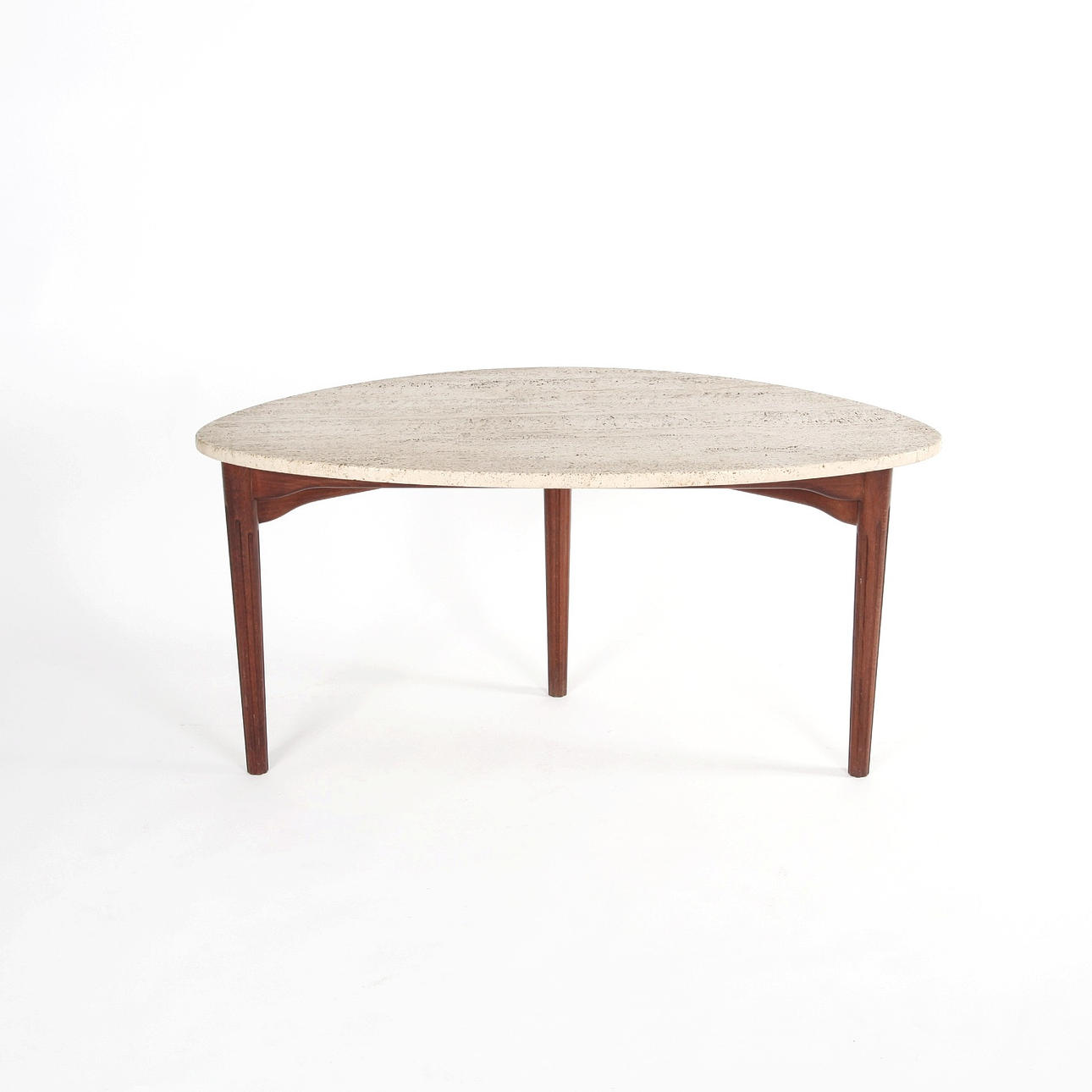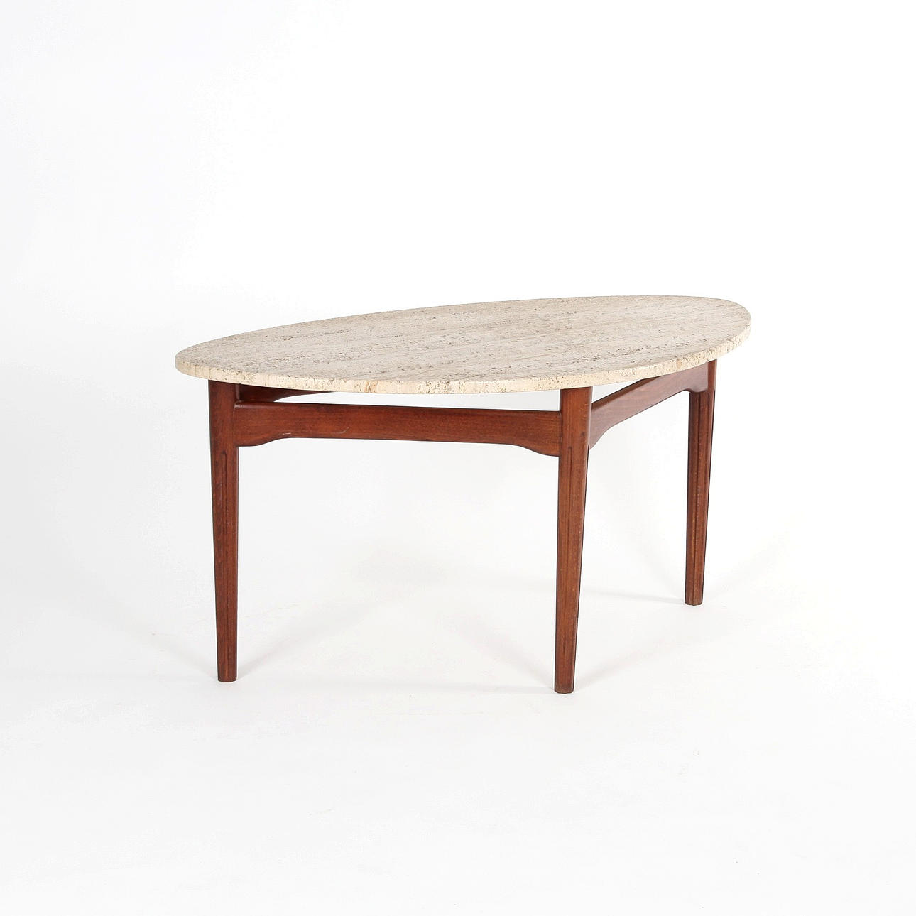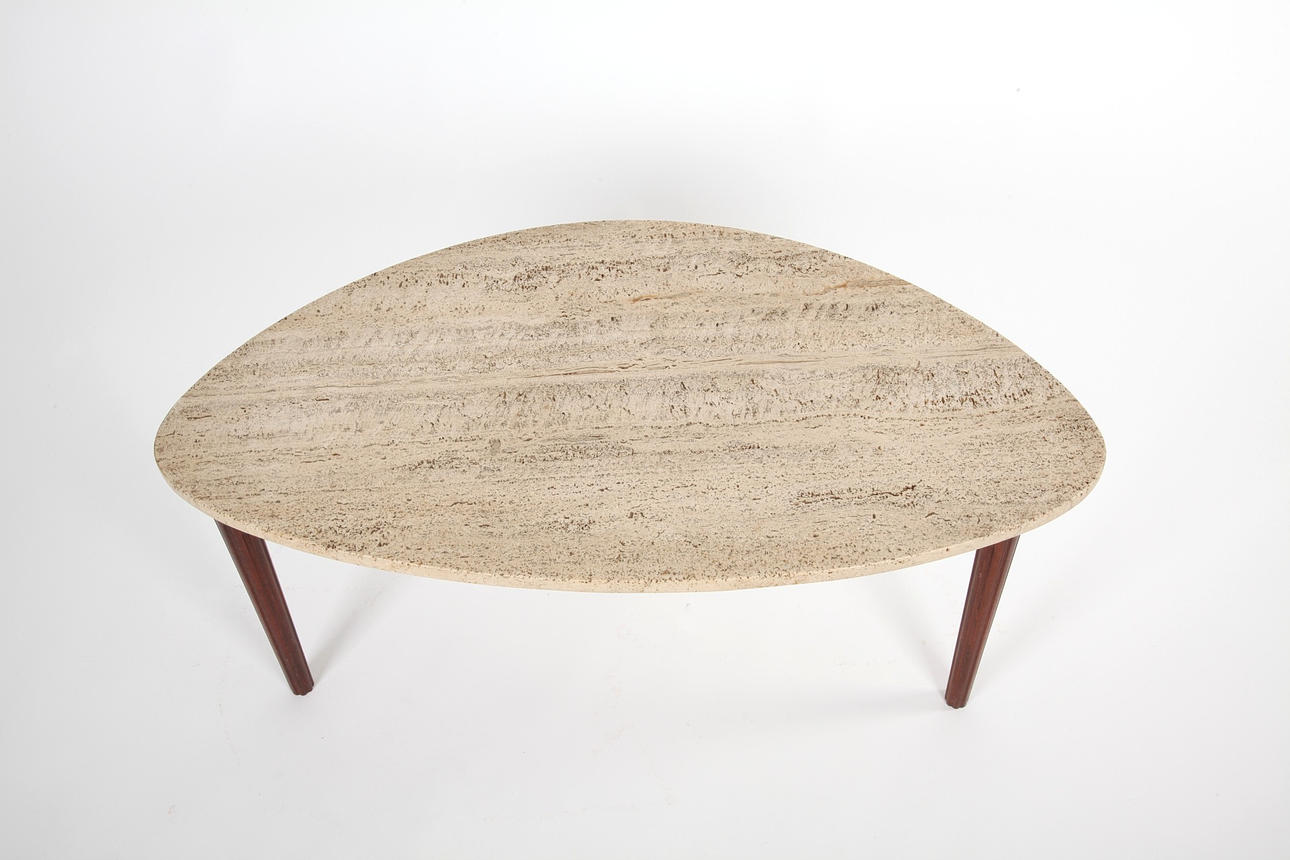 4313995. COUCHTISCH MIT TRAVERTINPLATTE, Schweden 1950/60er.