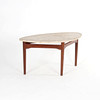 COUCHTISCH MIT TRAVERTINPLATTE, Schweden 1950/60er.