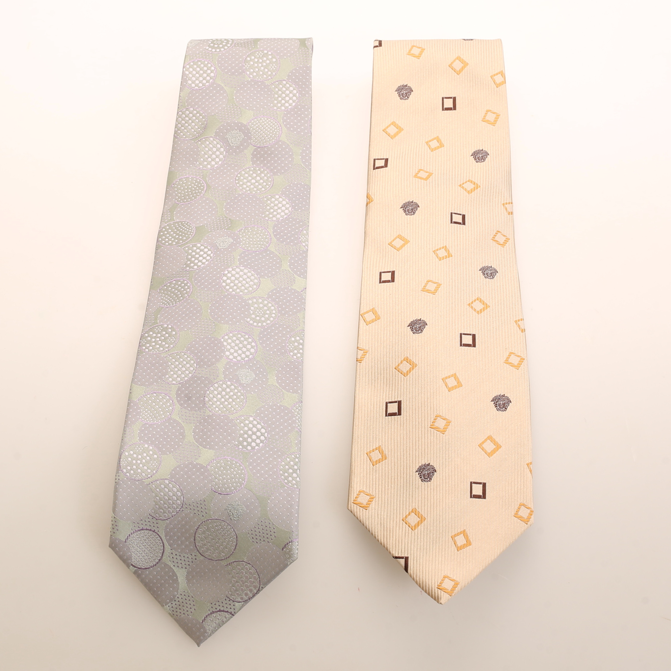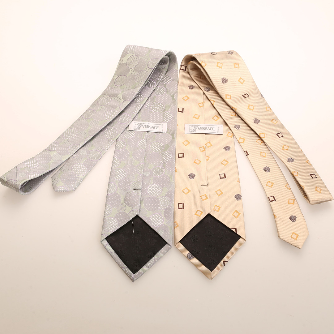 4315085. VERSACE, Krawatten, 2 Stück.
