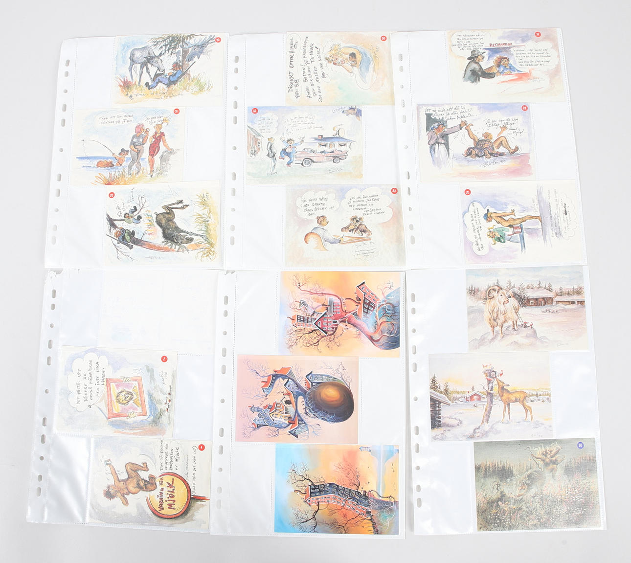 Ein Ordner mit etwa 110 Postkarten mit Motiven von Bruder Eric Bergqvist. Einige Duplikate treten auf.