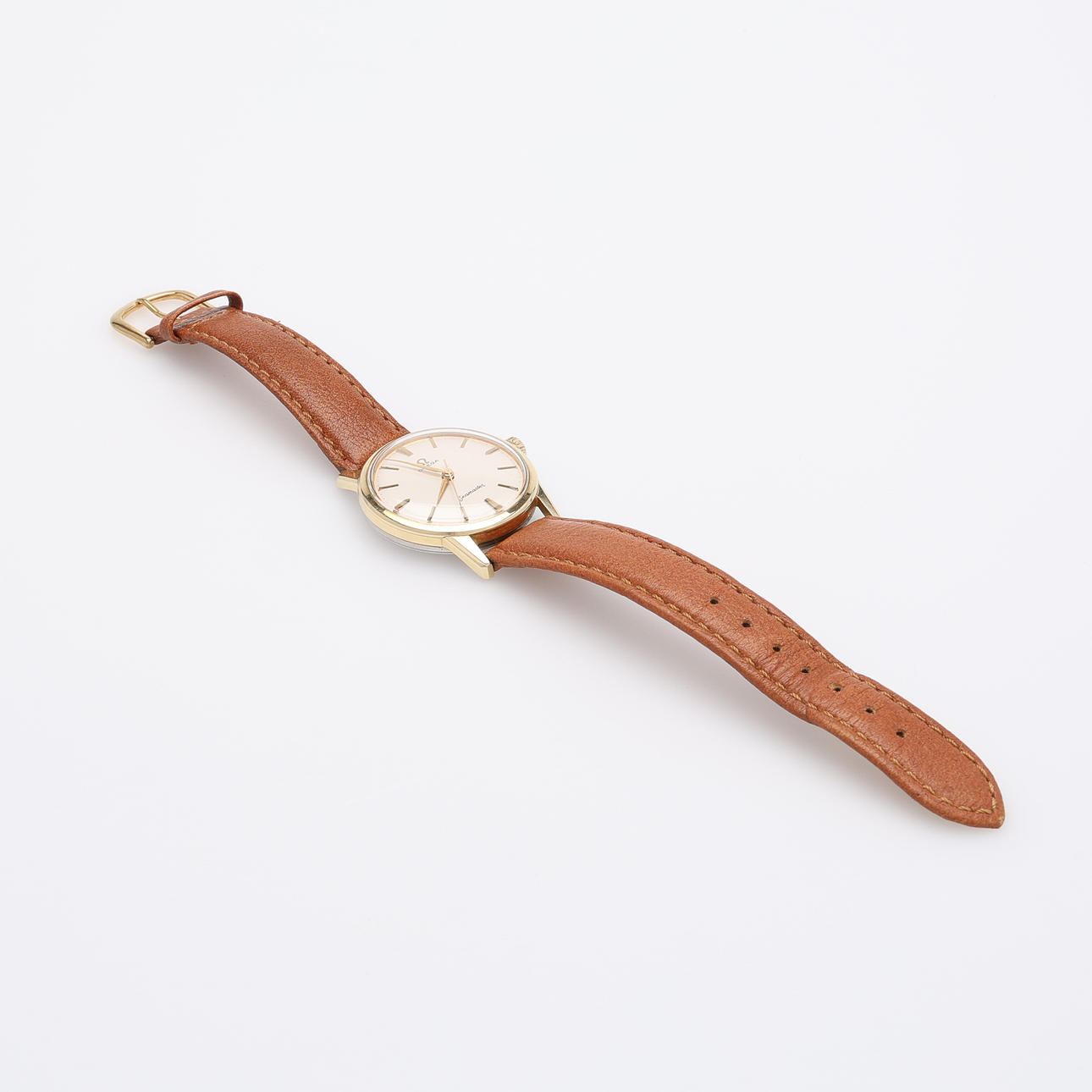 Gold auf Stahl, Kunststoffglas, manuelle Zuordnung, Referenznummer 14390-4 SC, Werkstattnummer 1788 83 87, Lederarmband und Sohle nicht original, Gehäusedurchmesser 35 mm, inklusive Gehäuse.