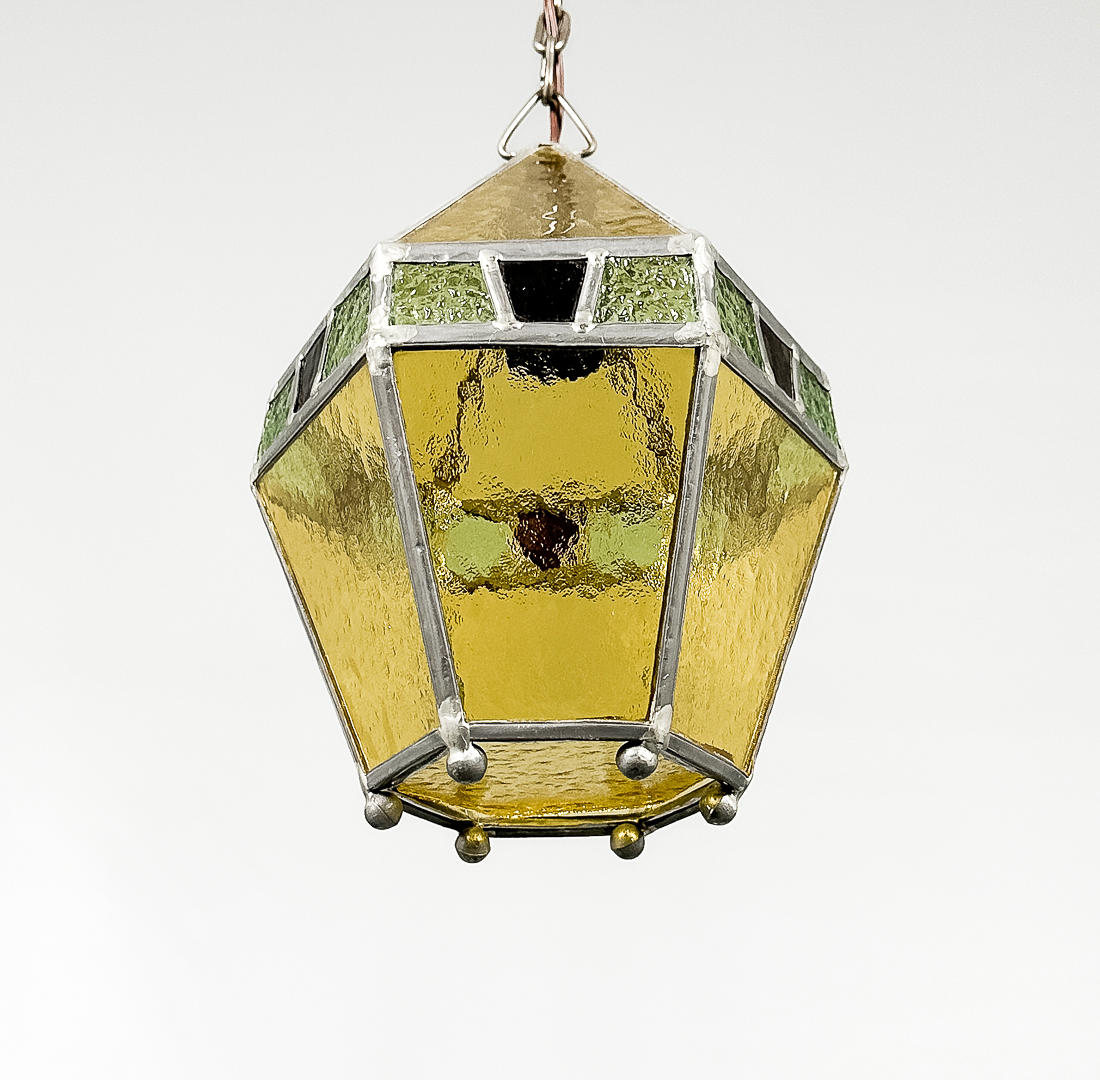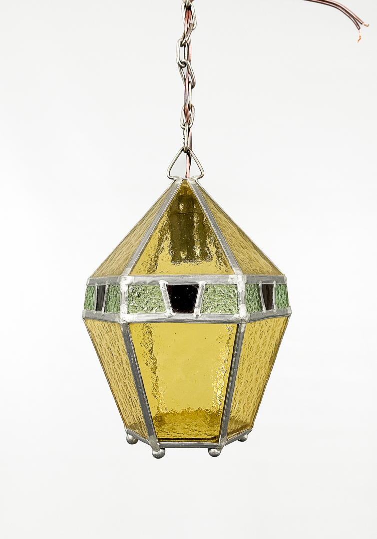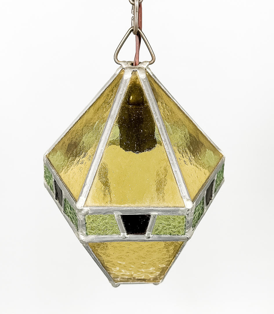 Eine Buntglas-Deckenlampe aus dem 20. Jahrhundert.