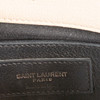 mit Beschlägen aus schwarz oxidiertem Metall. Deckel mit Griff und YSL-Schnalle. Abnehmbarer Schultergurt in Form einer verstümmelten Kette mit Schulterriemen aus Leder. Das Hauptfach wird mit einem Quallenschloss verschlossen. Innenraum mit einem Mittelfach mit Reißverschluss, zwei offenen Seitenfächern und einem kleineren offenen Kartenfach. Rückseite mit einem oberflächenmontierten Fach. Futterstoff aus schwarzer Baumwolle. Verschlagwortet mit SAINT LAURENT PARIS, hergestellt in Italien. Ca. 24 x 18 x 5,5 cm Der Schultergurt ist ca. 55 cm lang.