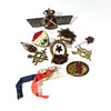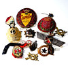 Zwölf Metallmedaillen mit verschiedenen Themen.