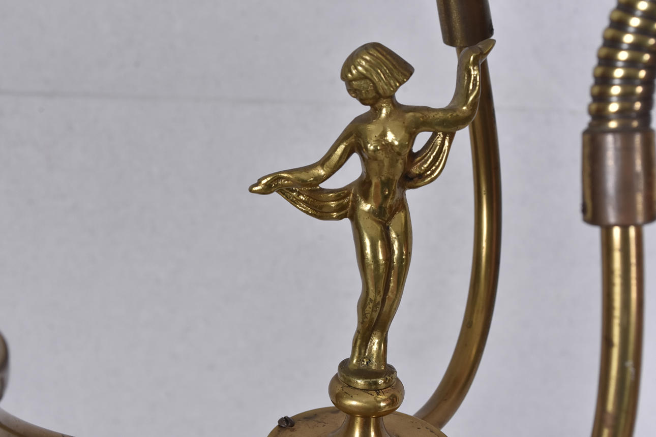 Stehlampe aus Holz/Messing, Mitte des 20. Jahrhunderts.