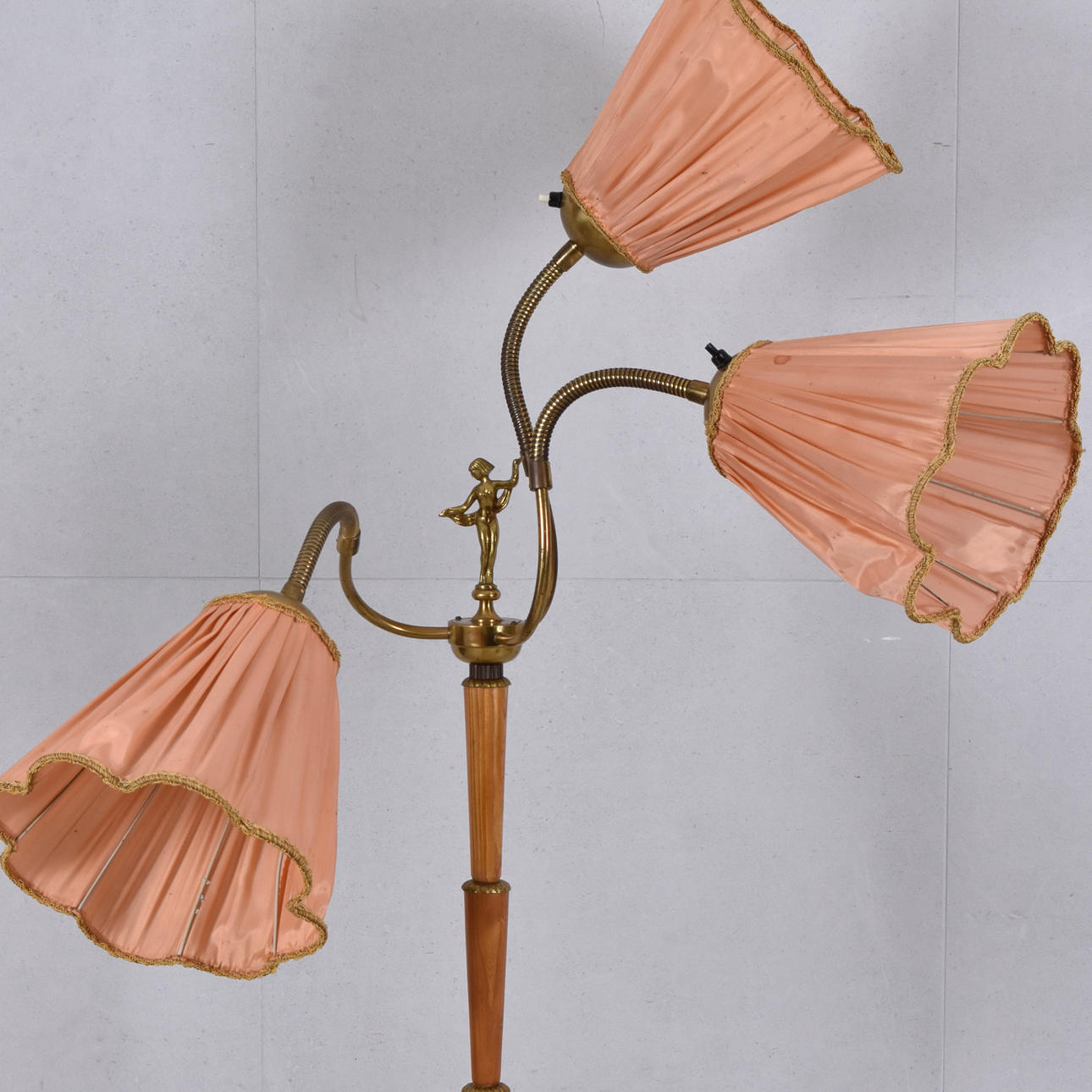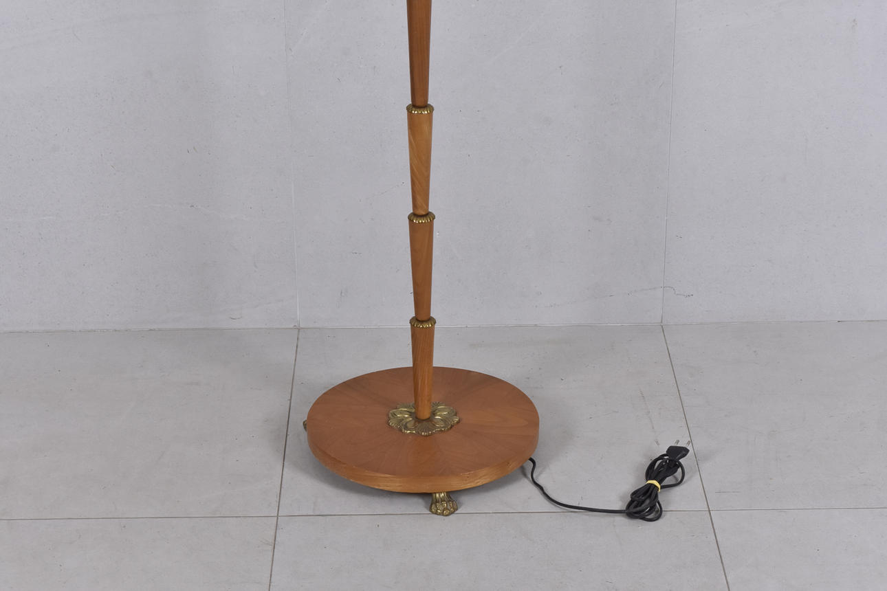 4322897. Stehlampe aus Holz/Messing, Mitte des 20. Jahrhunderts.