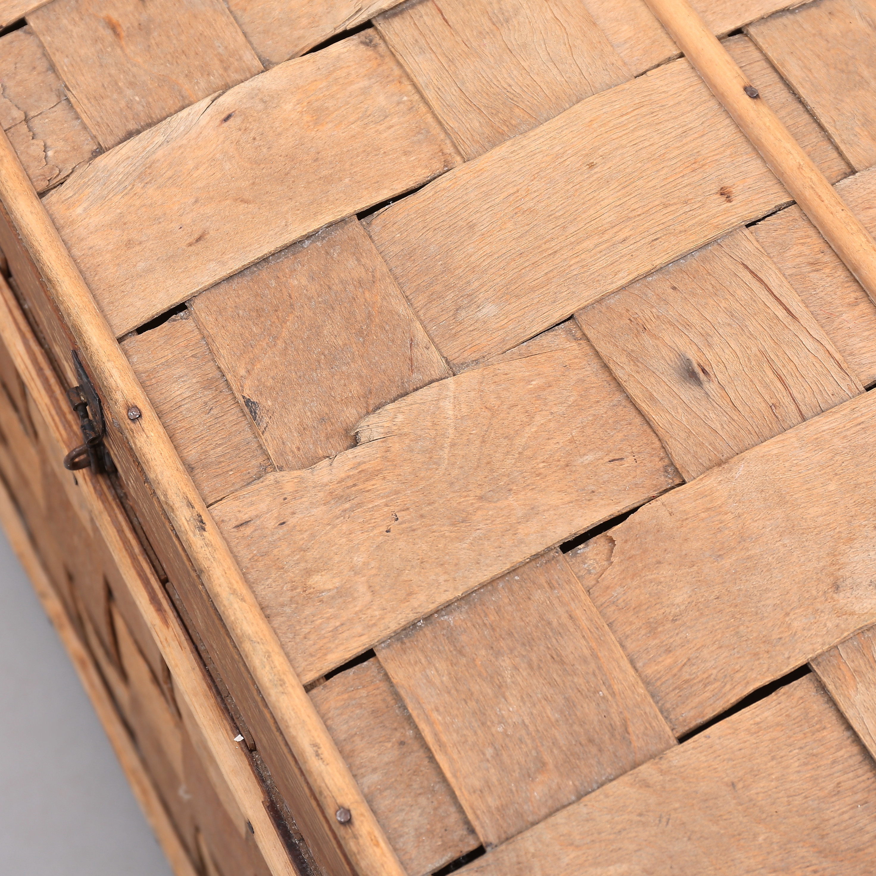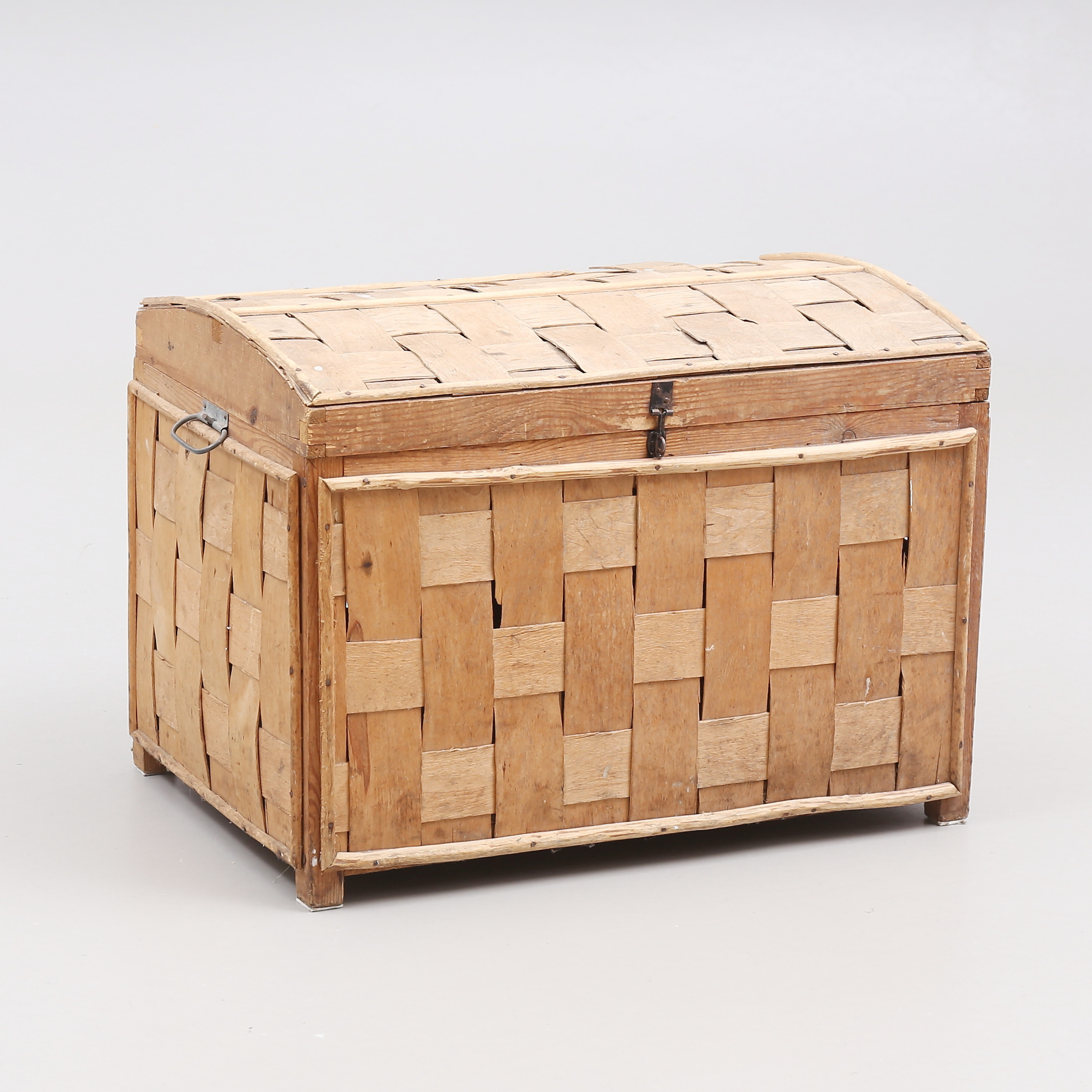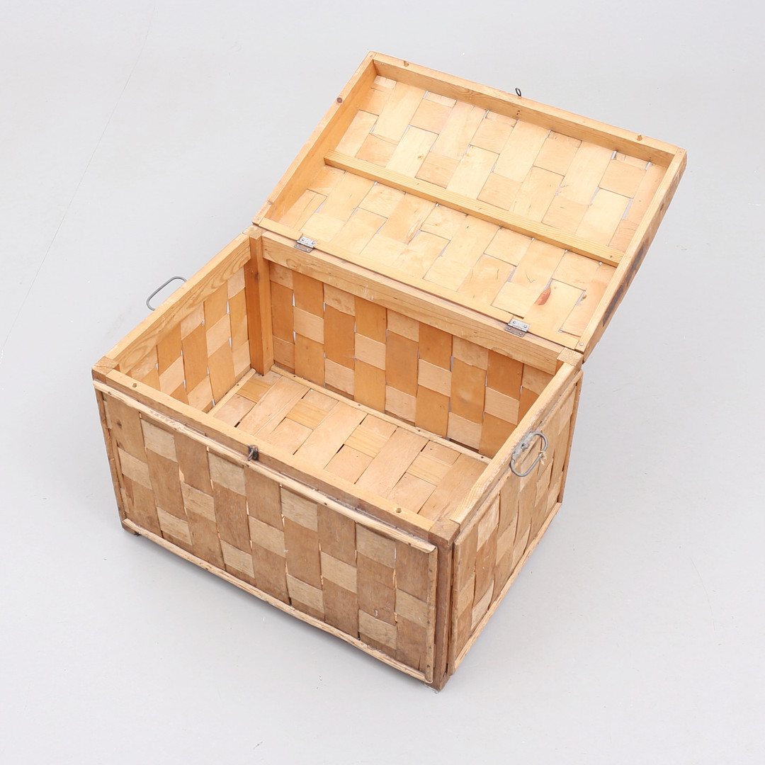 4323938. Eine Truhe aus Spanplatten aus dem 20. Jahrhundert mit Griffen.