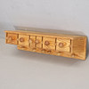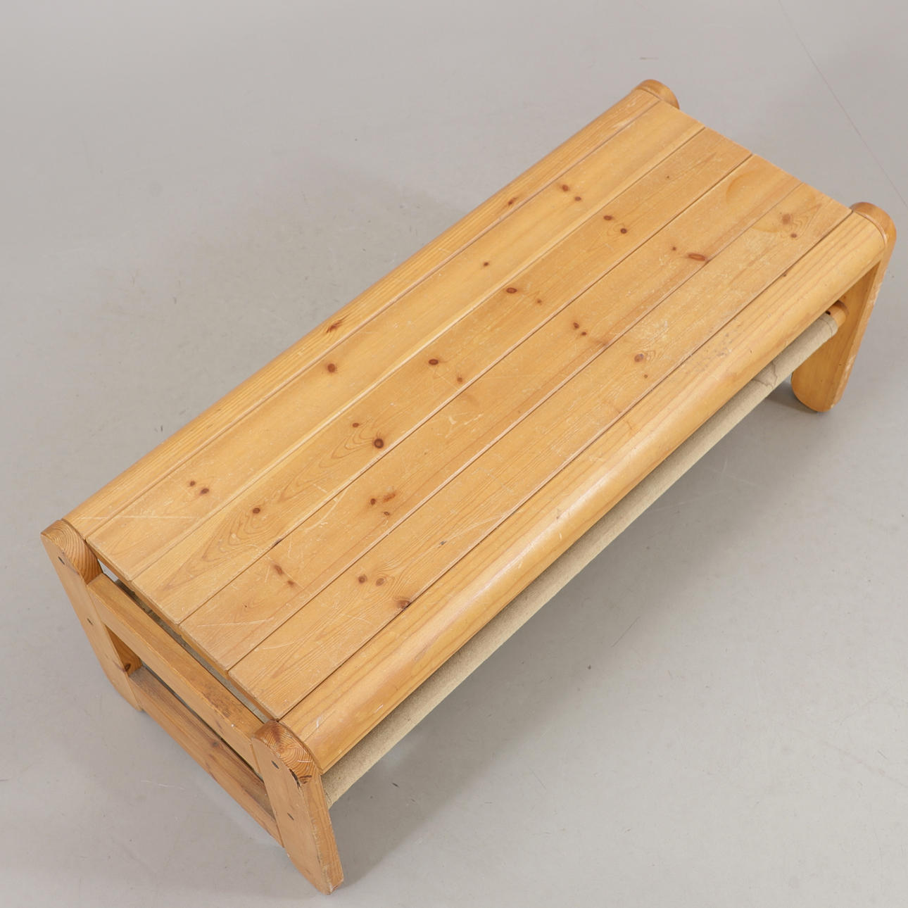 Sitzmöbel: Höhe 45 cm, Maße 122x50 cm. Wandregal: Höhe 18,5 cm, Länge 75 cm, Tiefe ab Wand 18,5 cm.