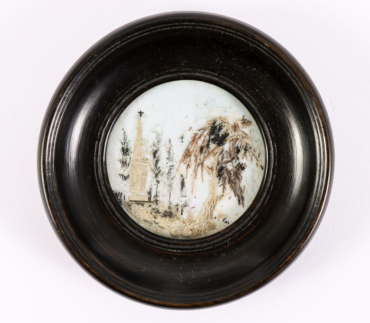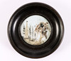 Medaillon mit Holzrahmen, Durchmesser 8 cm.