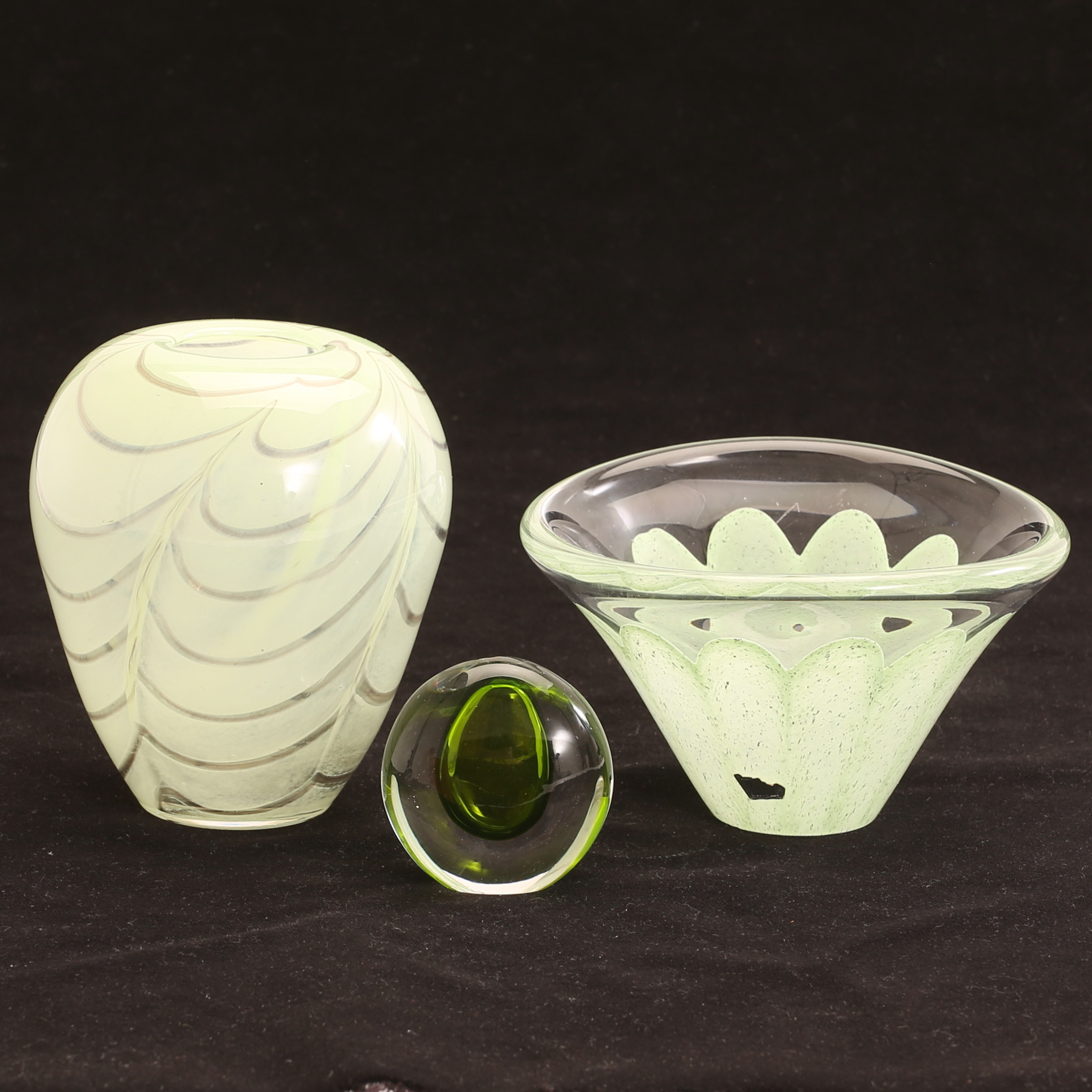 4325066. GLASOBJEKTE, 3 Stück, Kunstglas.