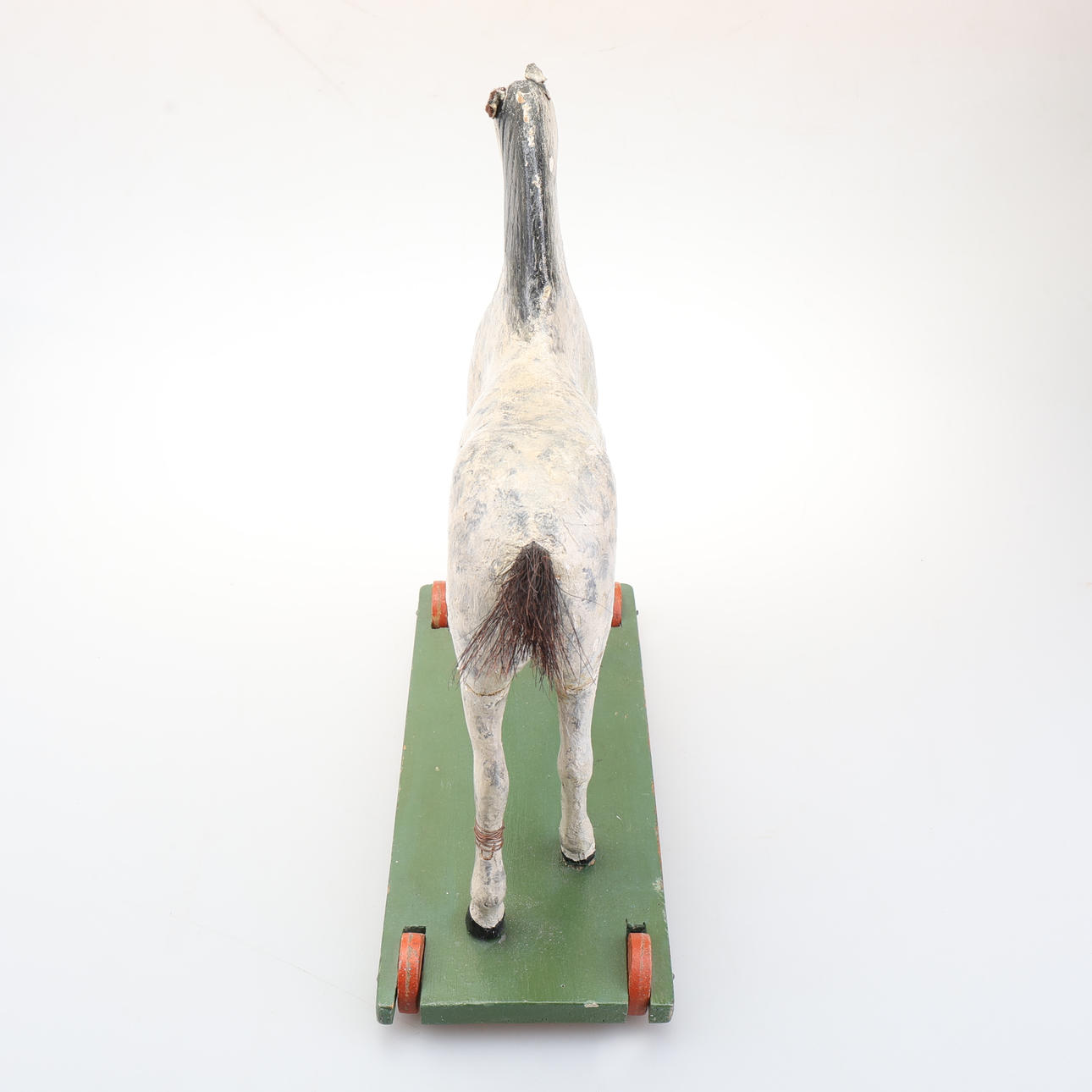 4325089. SPIELZEUGPFERD, auf fahrbarem Tablett.