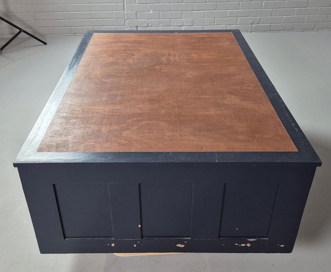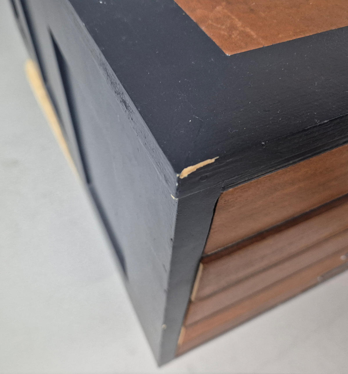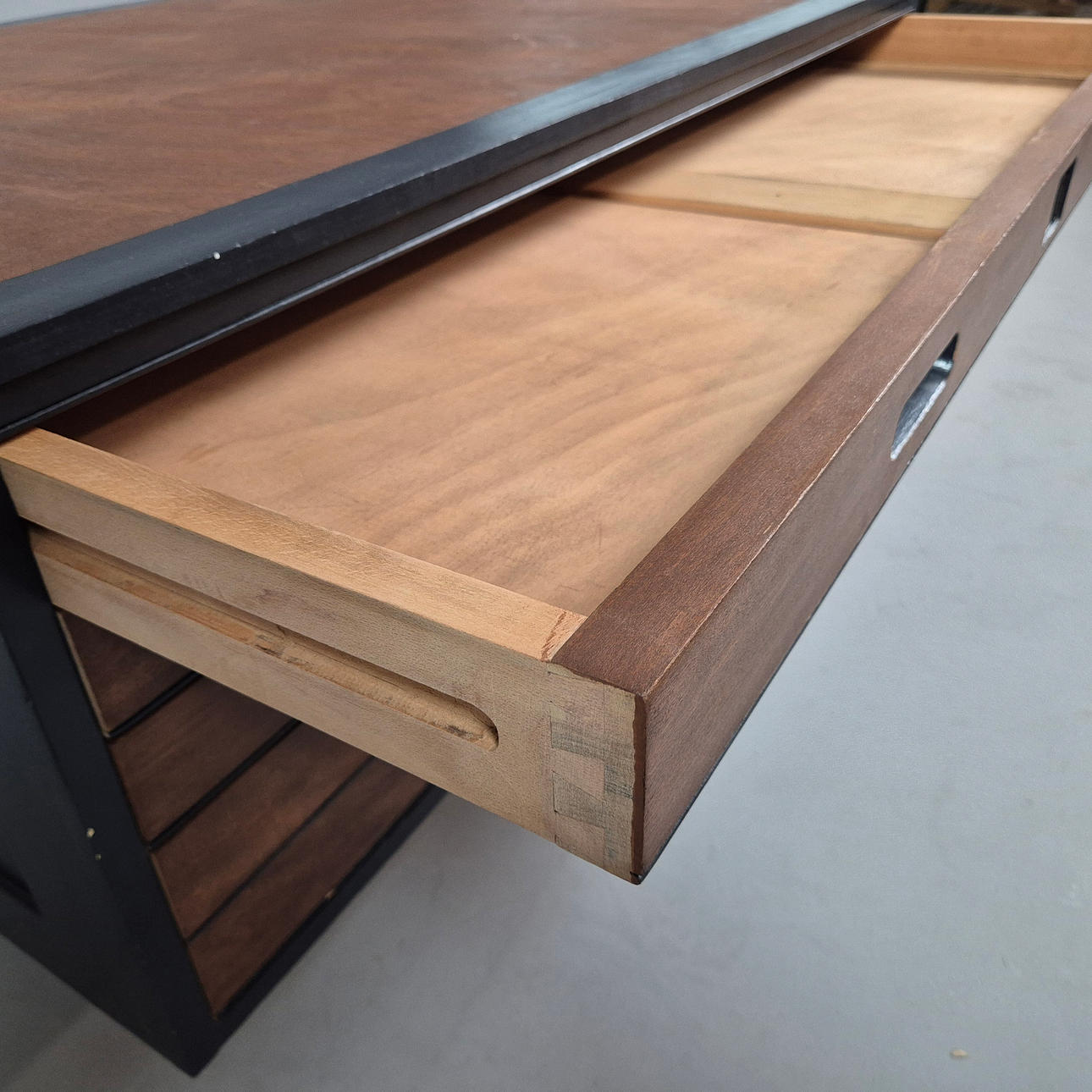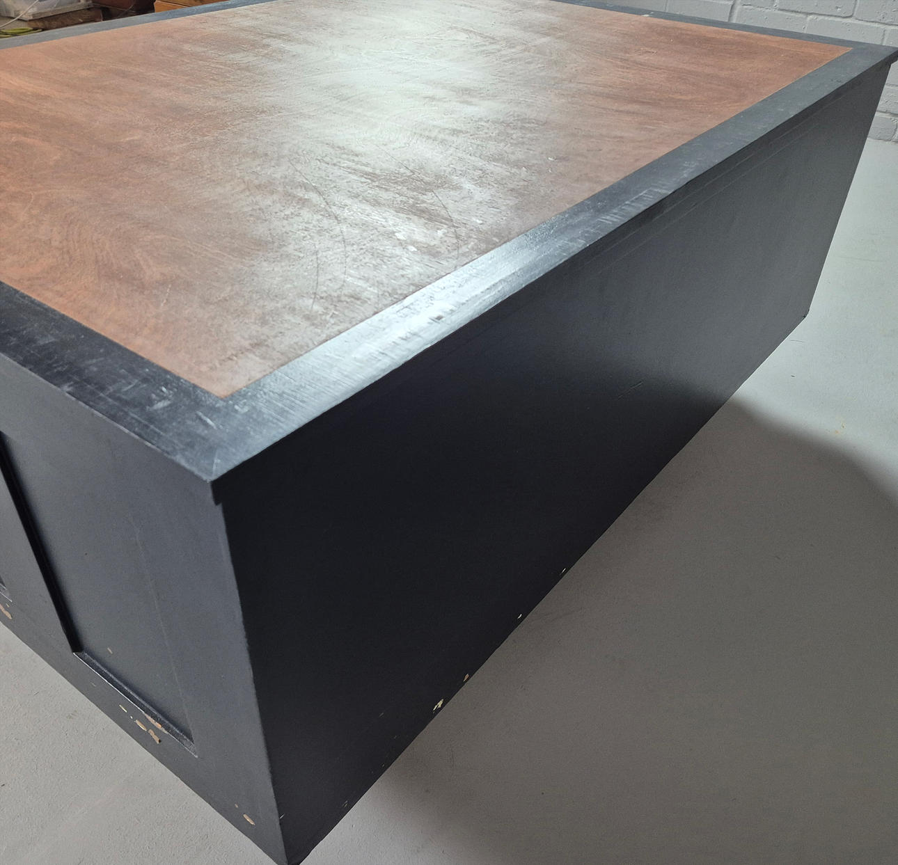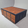 mit 5 Schublade, später bemaltes Detail, ca. 122 cm x 89 cm x 41,5 cm.