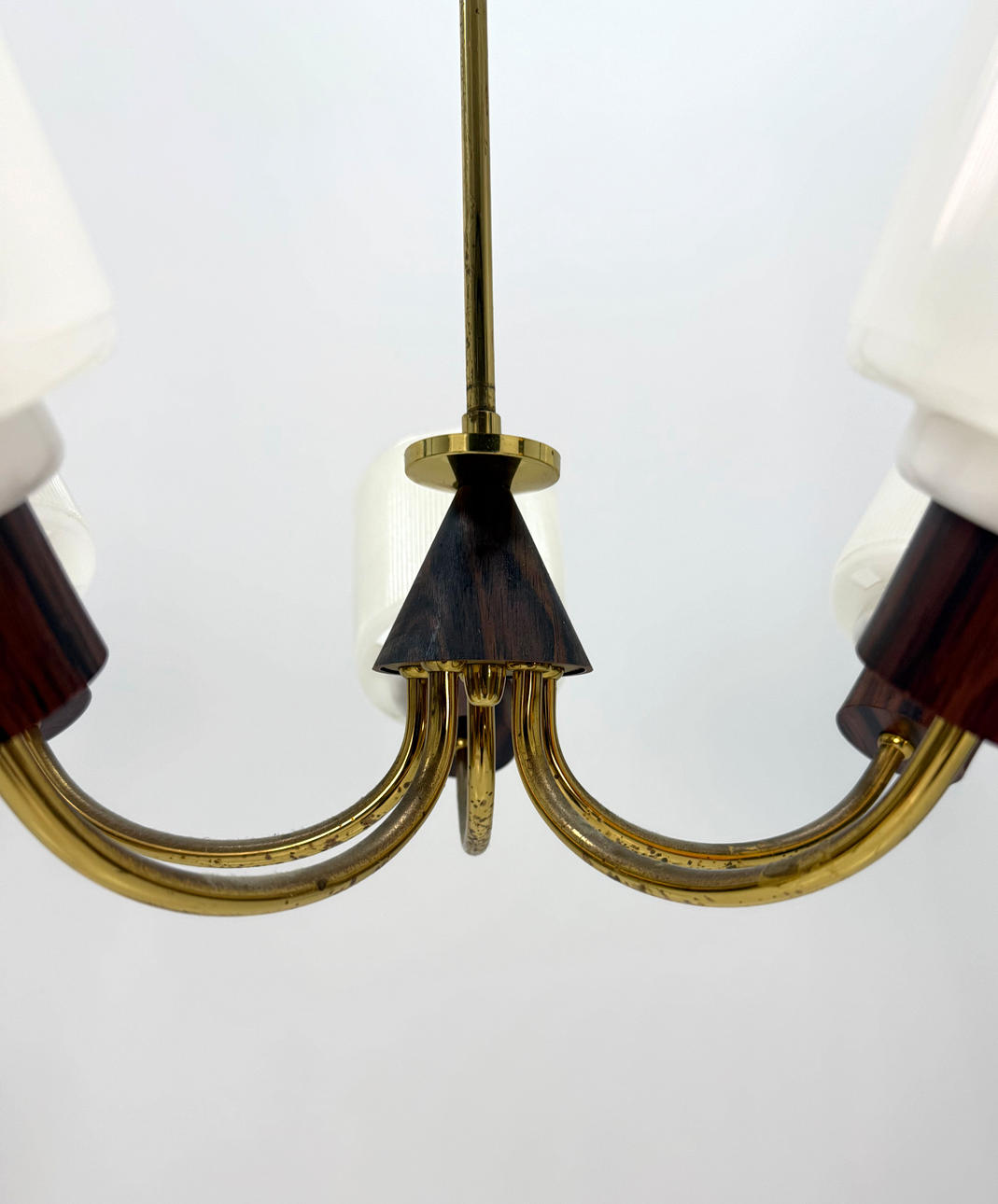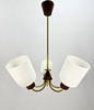 DECKENLEUCHTE Mitte 1900, Messing, Holz, Kunststoff.