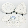 5 Schalen, Durchmesser von 10-13 cm, oval 14 x 18 cm, ovale Schale ca. 23 x 28 cm, Dreieckschale 25 x 27 cm.