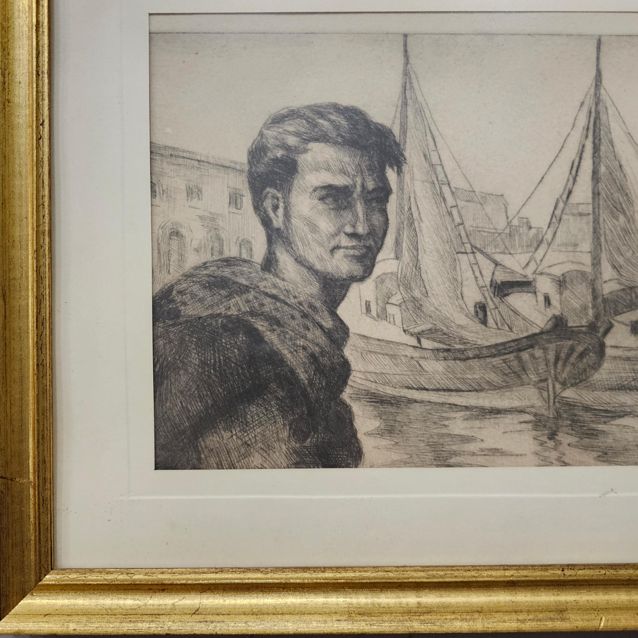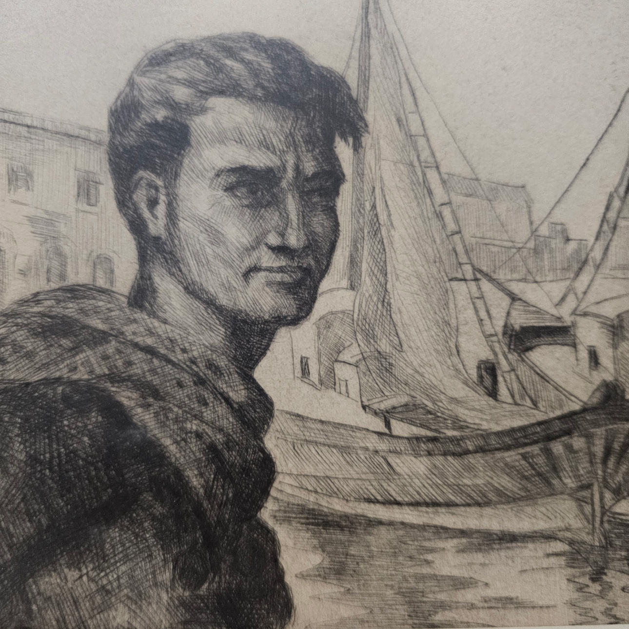 SEEMANN IM HAFEN. BLEISTIFT AUF PAPIER.