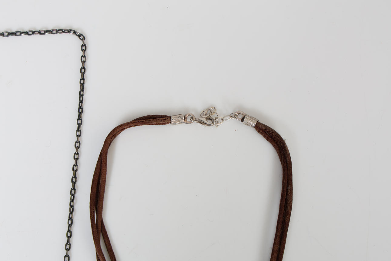 Dazu gehören Halsketten, Anhänger und Ketten.