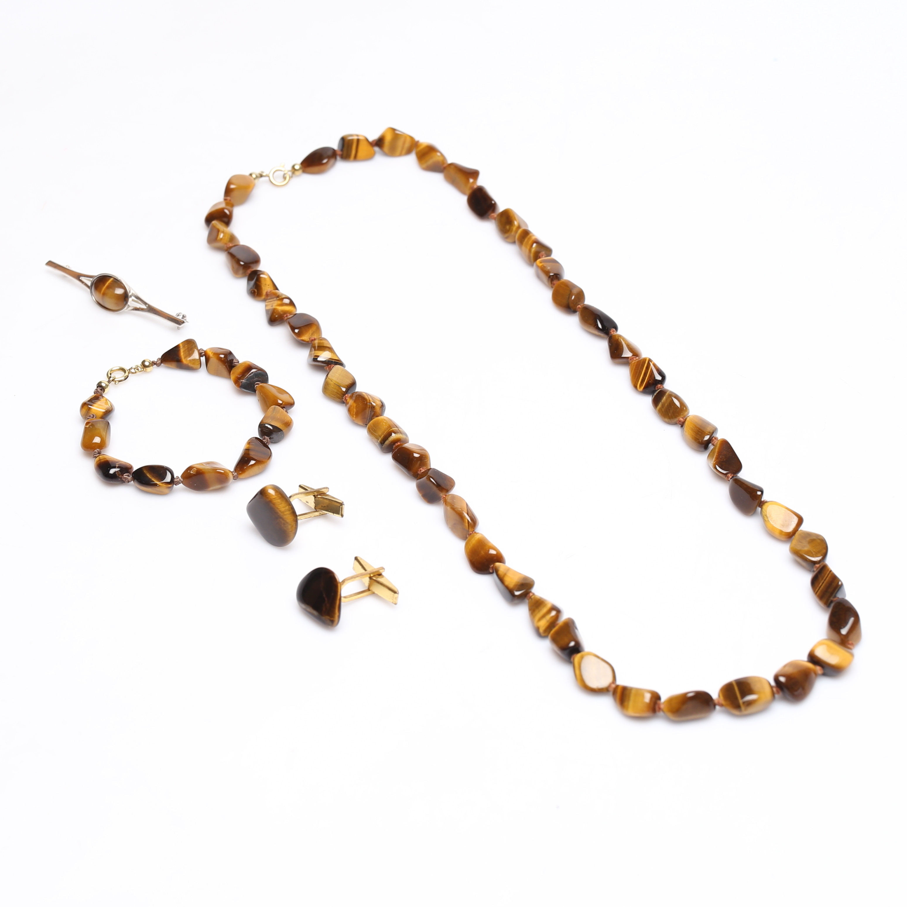 4326600. SCHMUCK, 4 Stück, Tigerauge.
