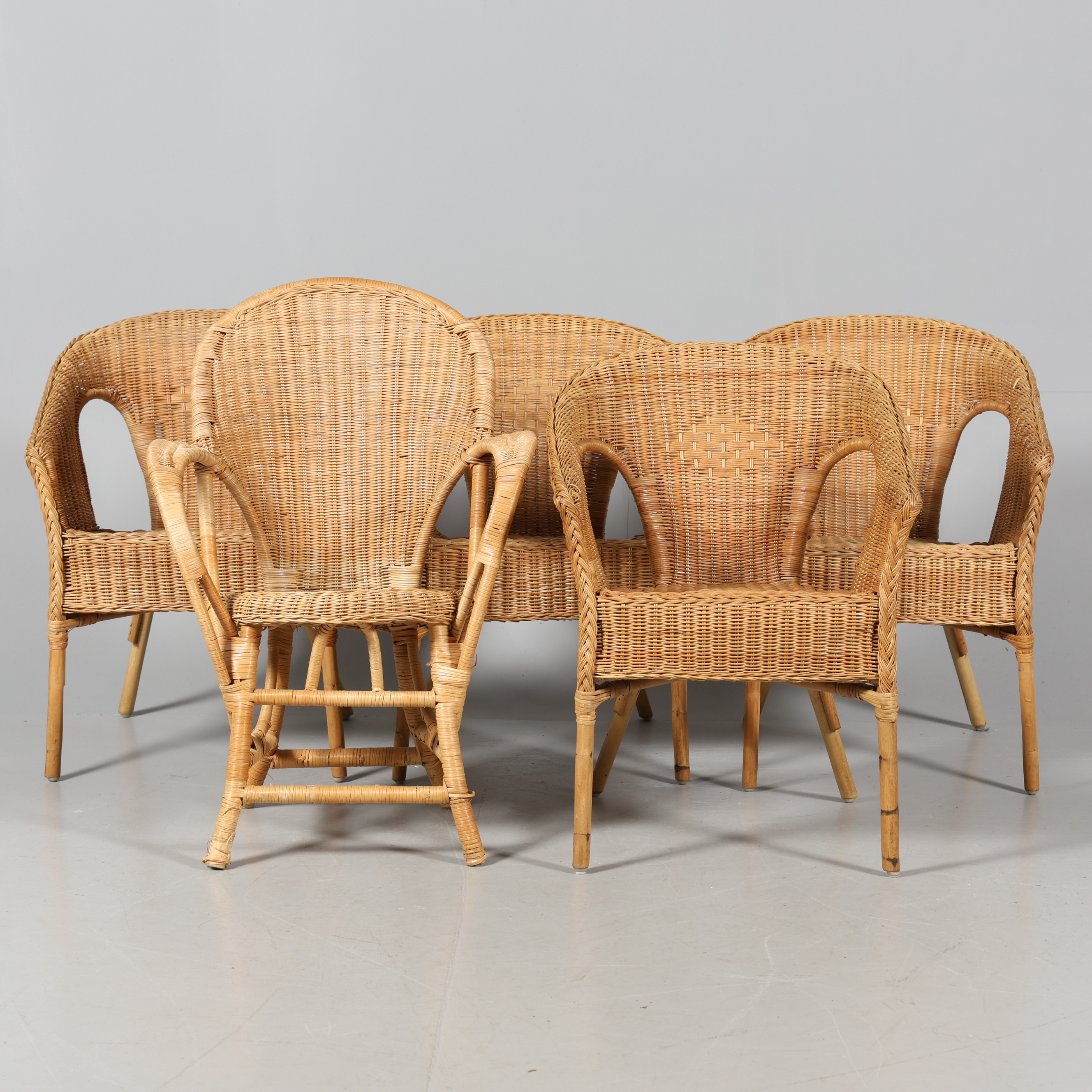 4326865. STÜHLE, 5 Stück, Rattan, gemischte Modelle.
