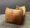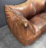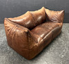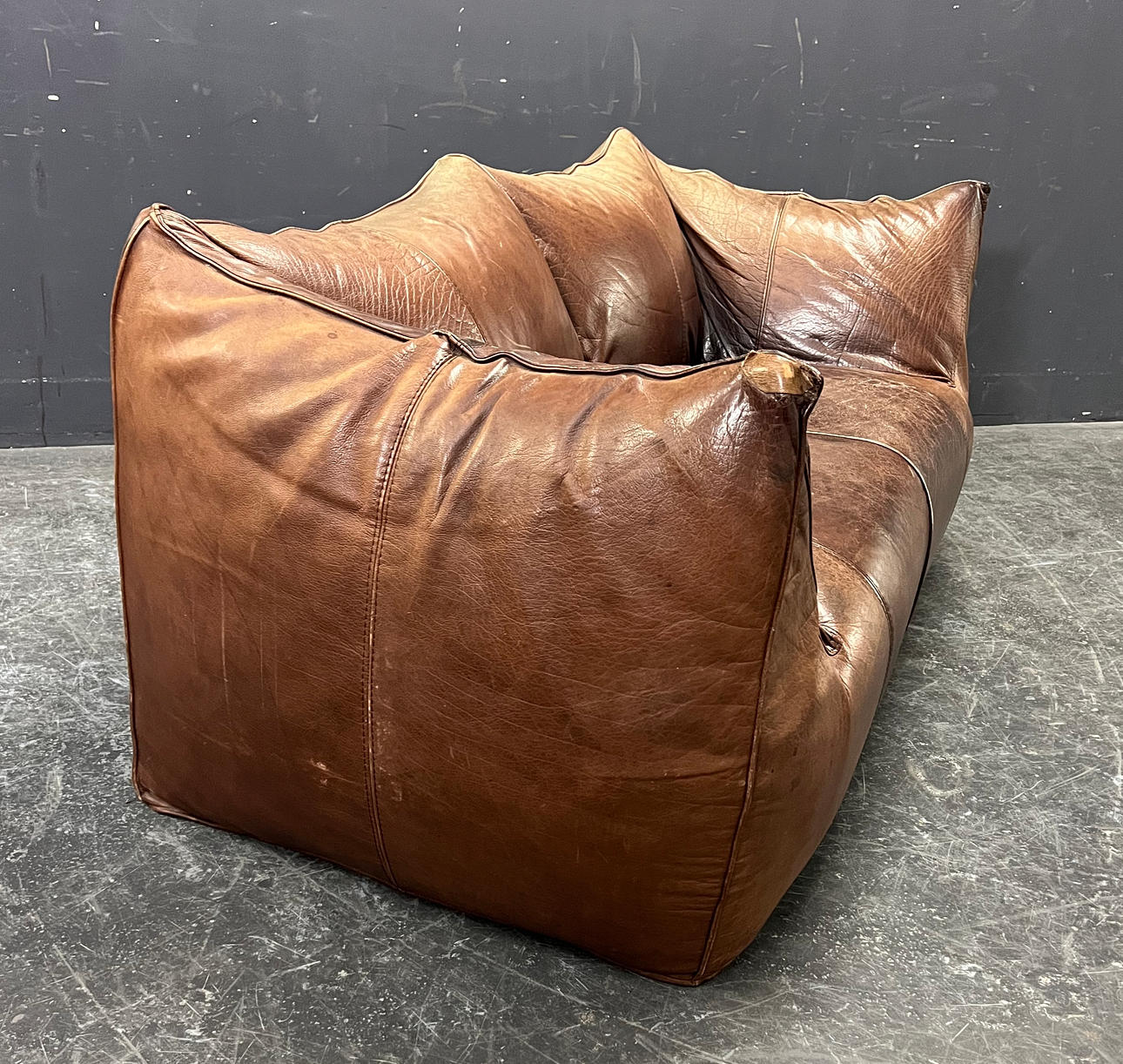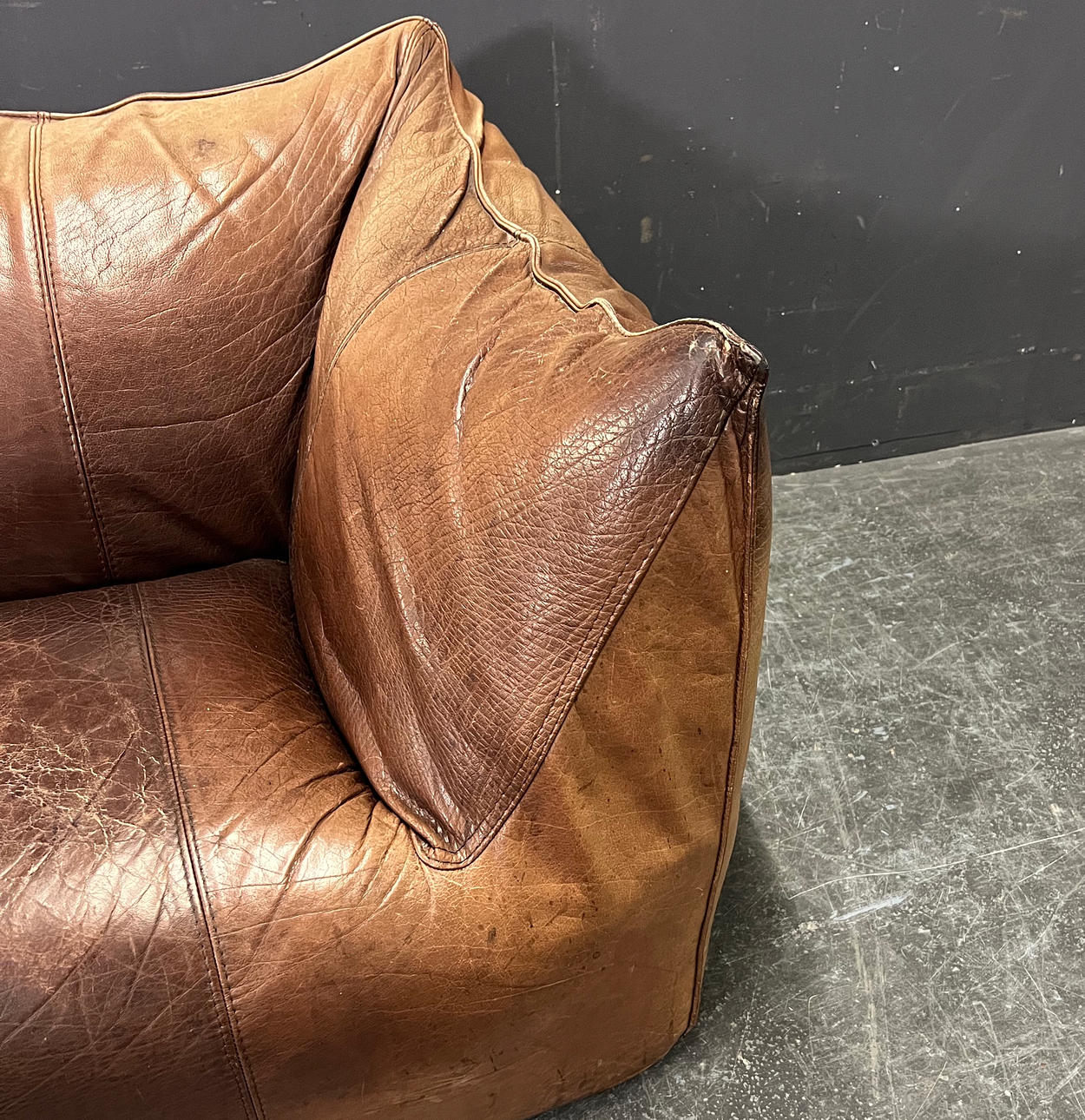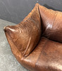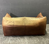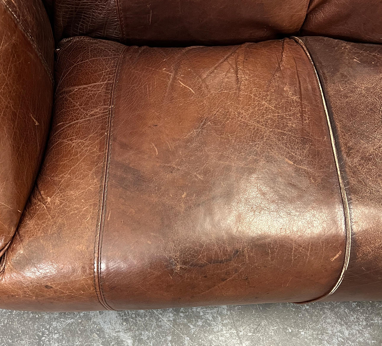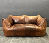 Gepolstertes Sofa mit dunkelbraunem Leder bezogen.