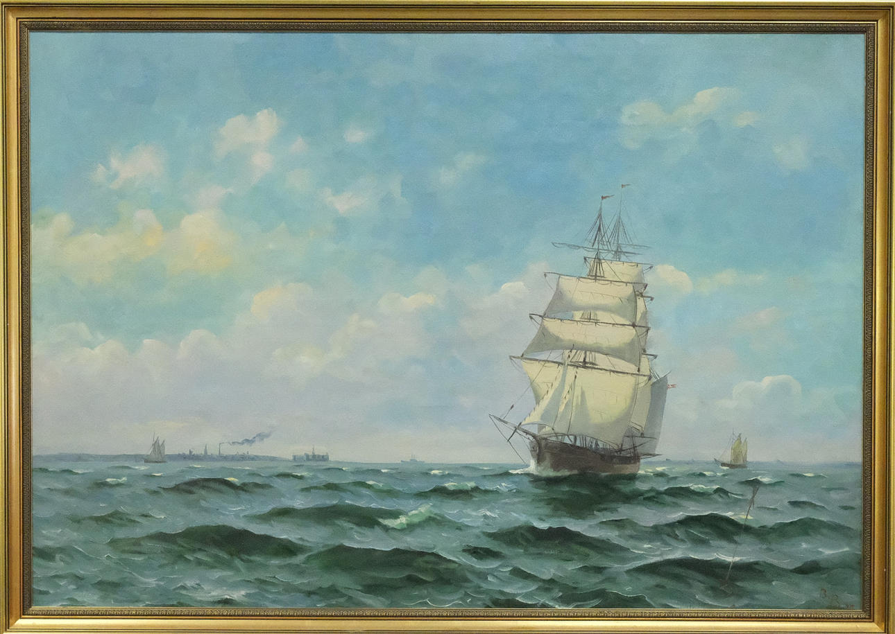 BENT BILLE. SEGELBOOTE AUF SEE, ÖL AUF LEINWAND.