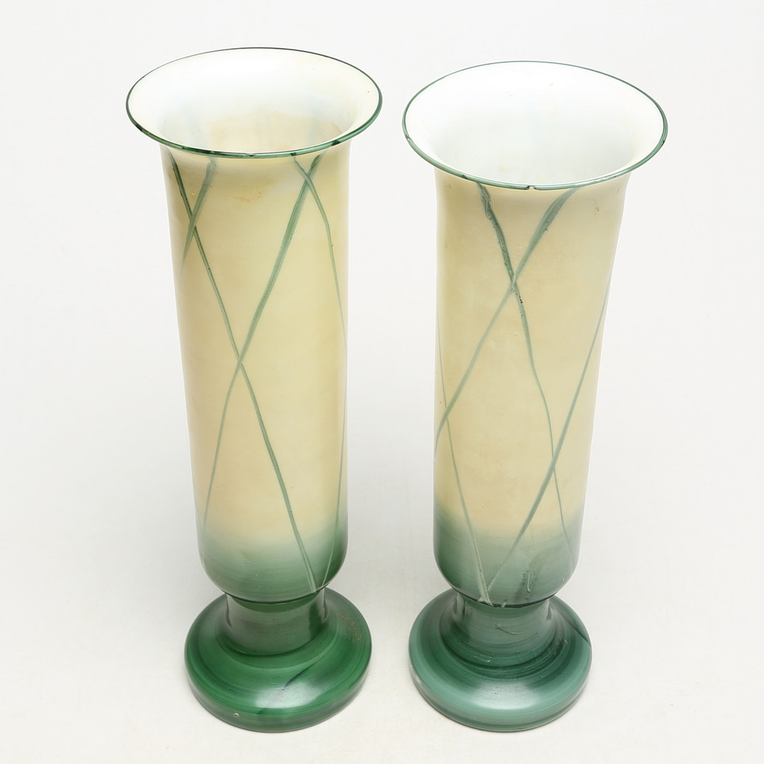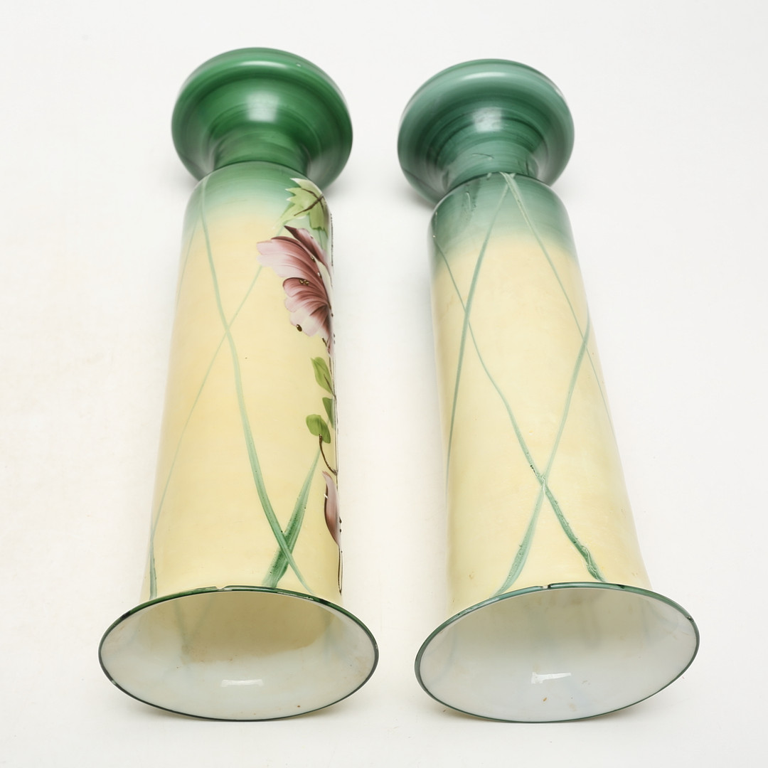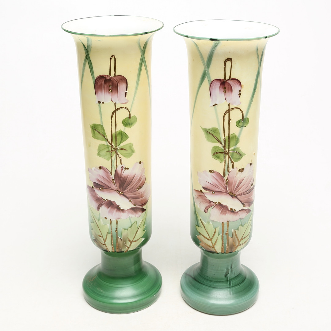 4329350. Ein Paar handbemalter Opalvasen aus der Jahrhundertwende 1900.