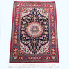 Durchgehendes Muster, zentrales Medaillon auf marineblauem und floralem Grund