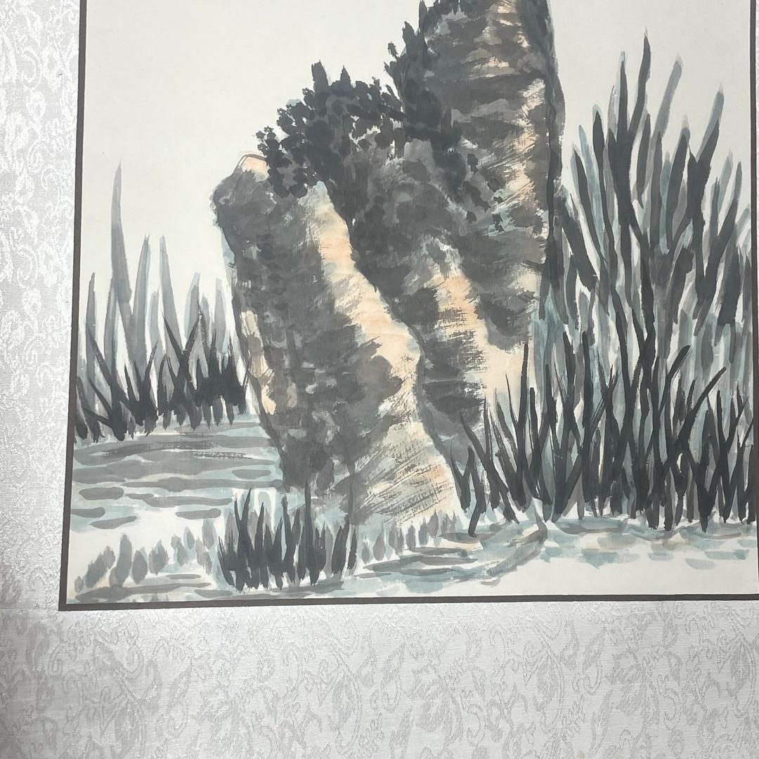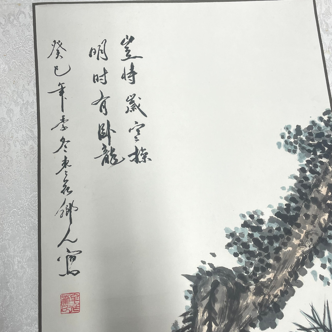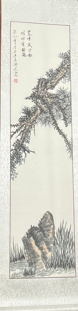 4332171. CHINESISCHER HANDBEMALTER WANDBEHANG MIT SCHRIFTROLLEN.