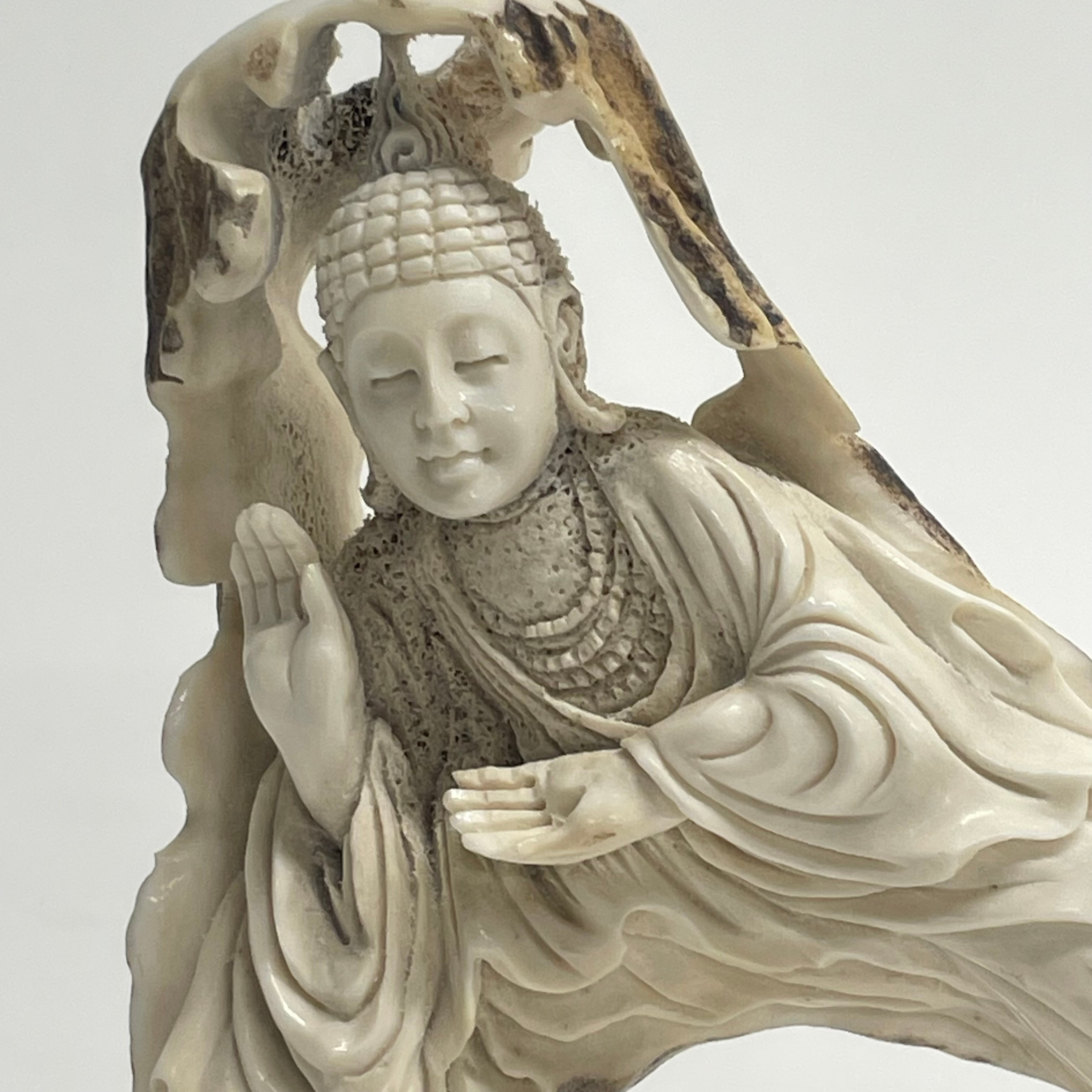 4332261. BUDDHISTISCHE FIGUR AUS GESCHNITZTEM HIRSCHGEWEIH.