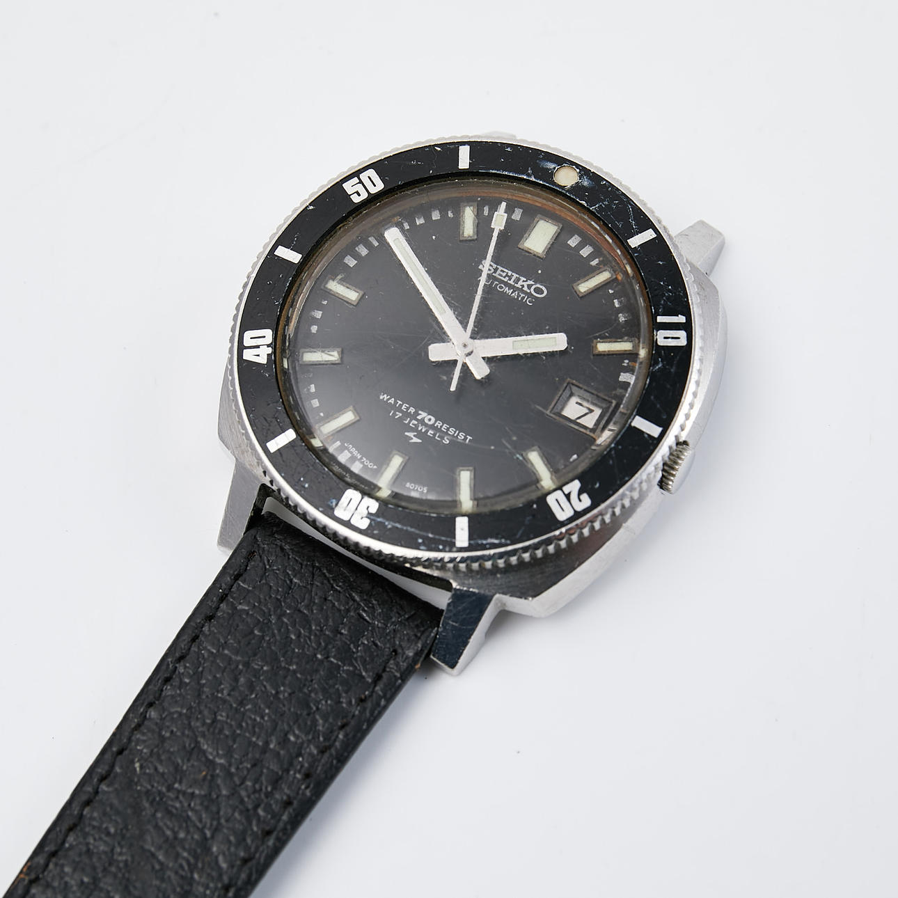 Gehäuse mit Referenz 7005-7052 und Seriennummer 190795, Uhrwerk mit Seiko 7005A 17J gekennzeichnet.