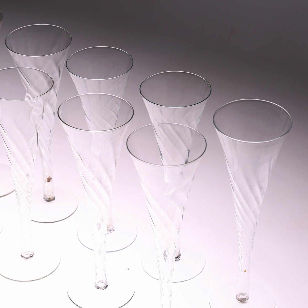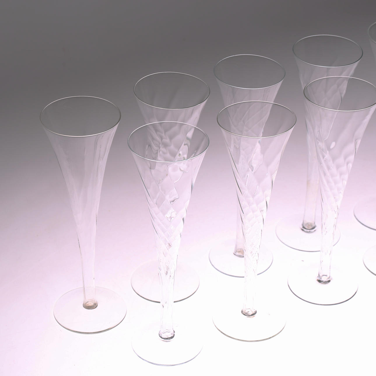 4333506. CHAMPAGNERSTREBEN/GLÄSER, 9 Stück, Glas, 1900er.