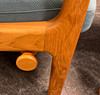 Gestell massiv Teakholz, Kissen mit Textilbezug.