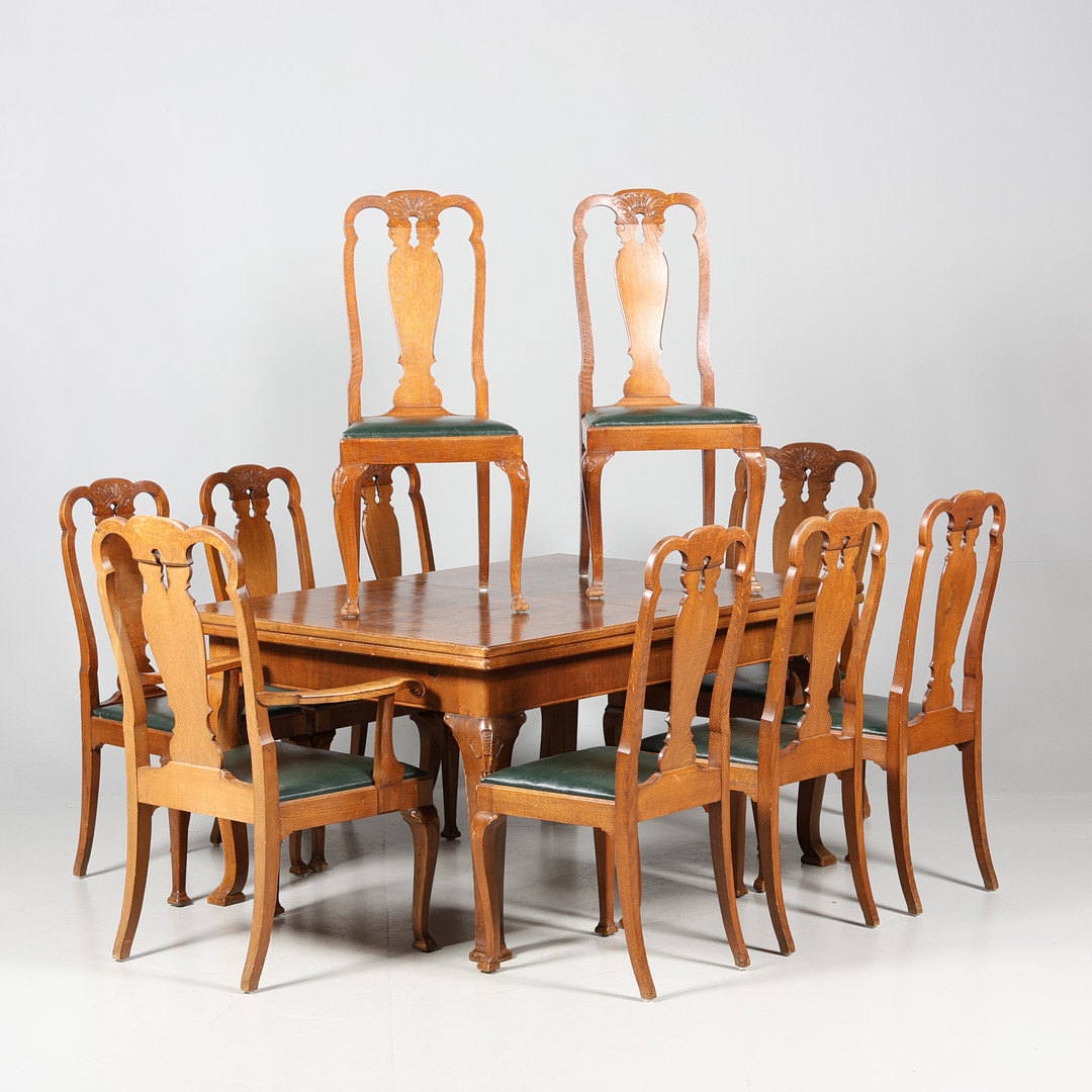 4334395. ESSZIMMERGRUPPE, 11-teilig, spätbarocker Stil.