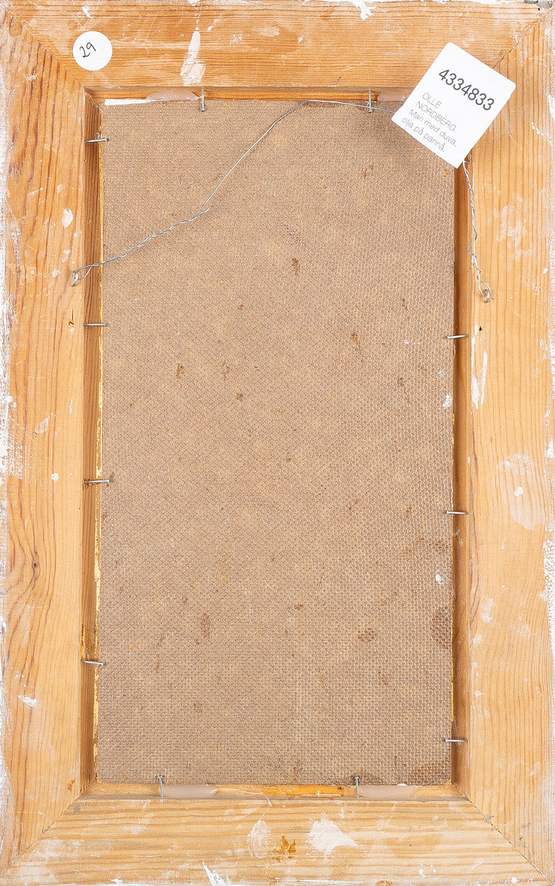 4334833. OLLE NORDBERG. Mann mit Taube, Öl auf Tafel.