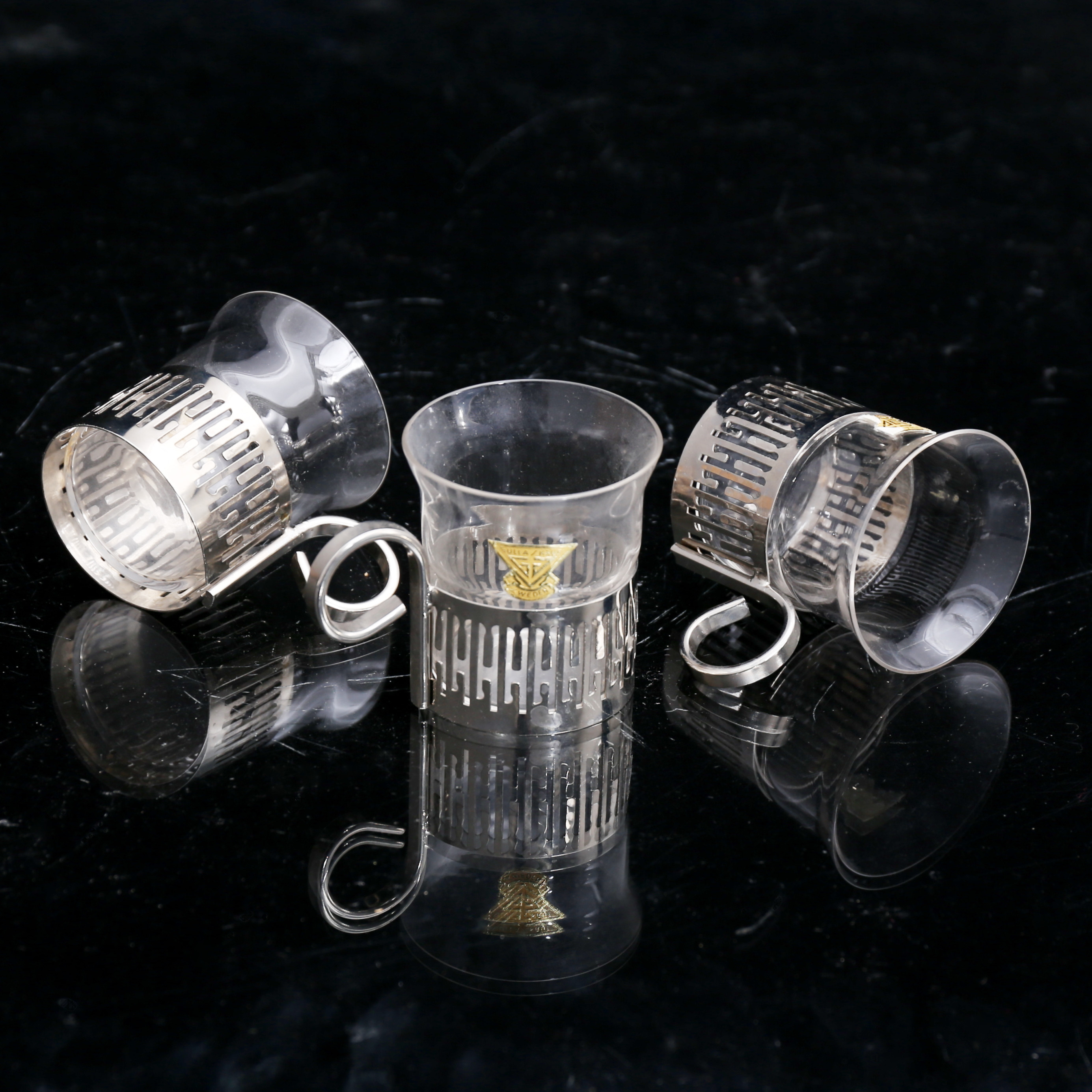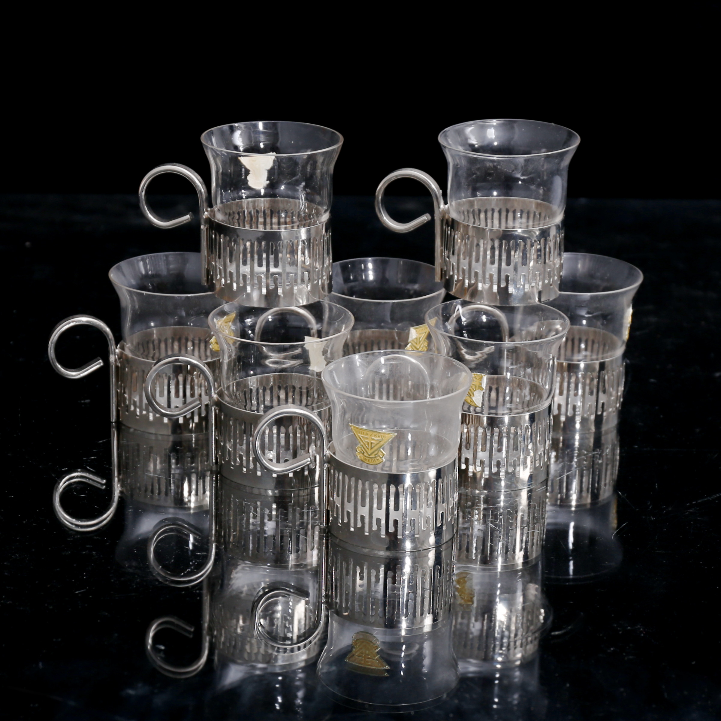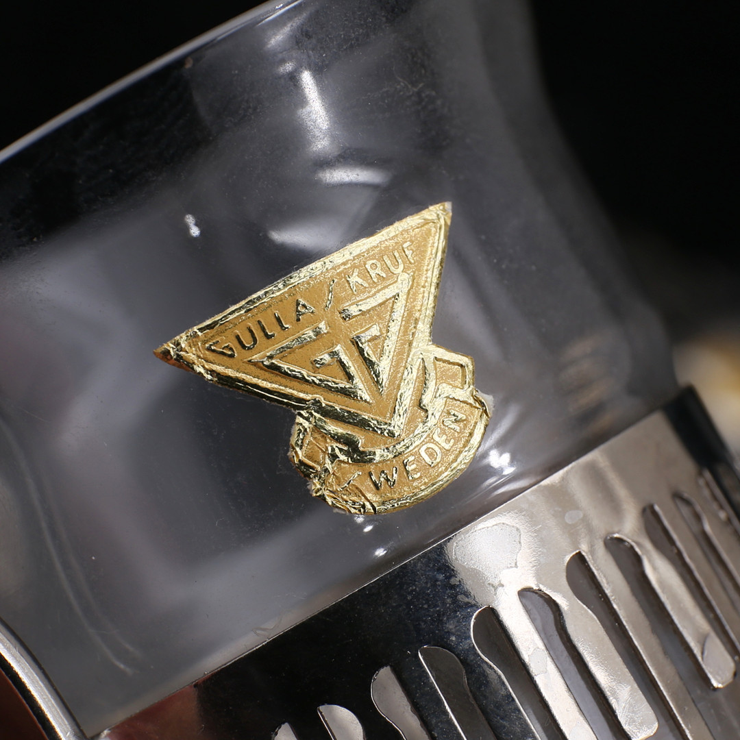 4335401. GLÖGGLASSEN, 8 Stück, Glas/Metall, Gullaskruf.