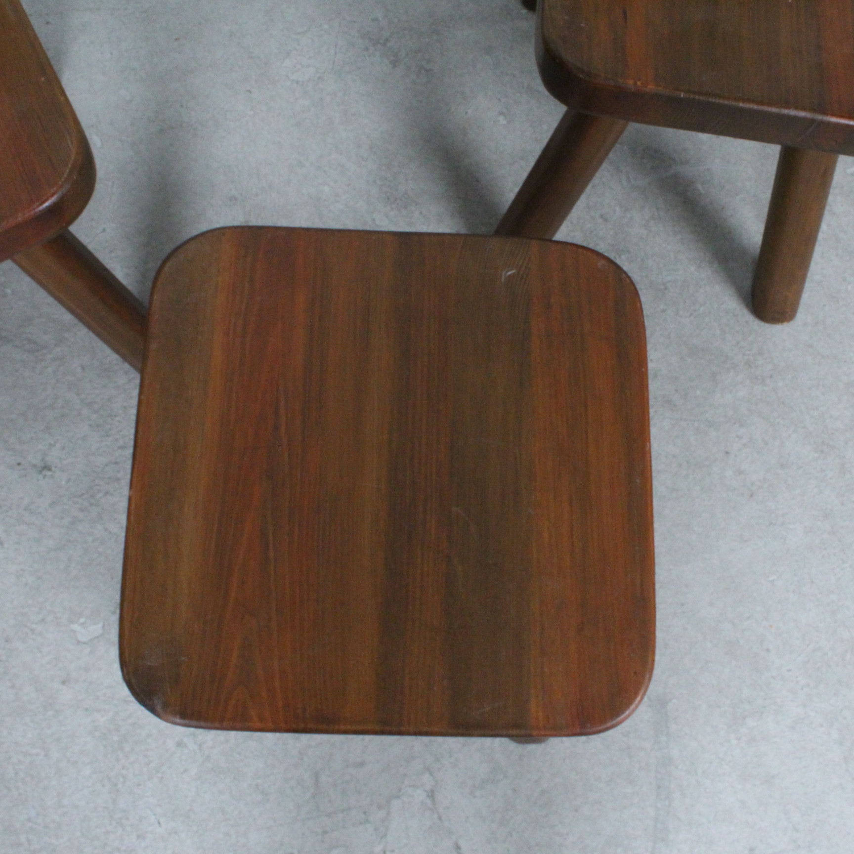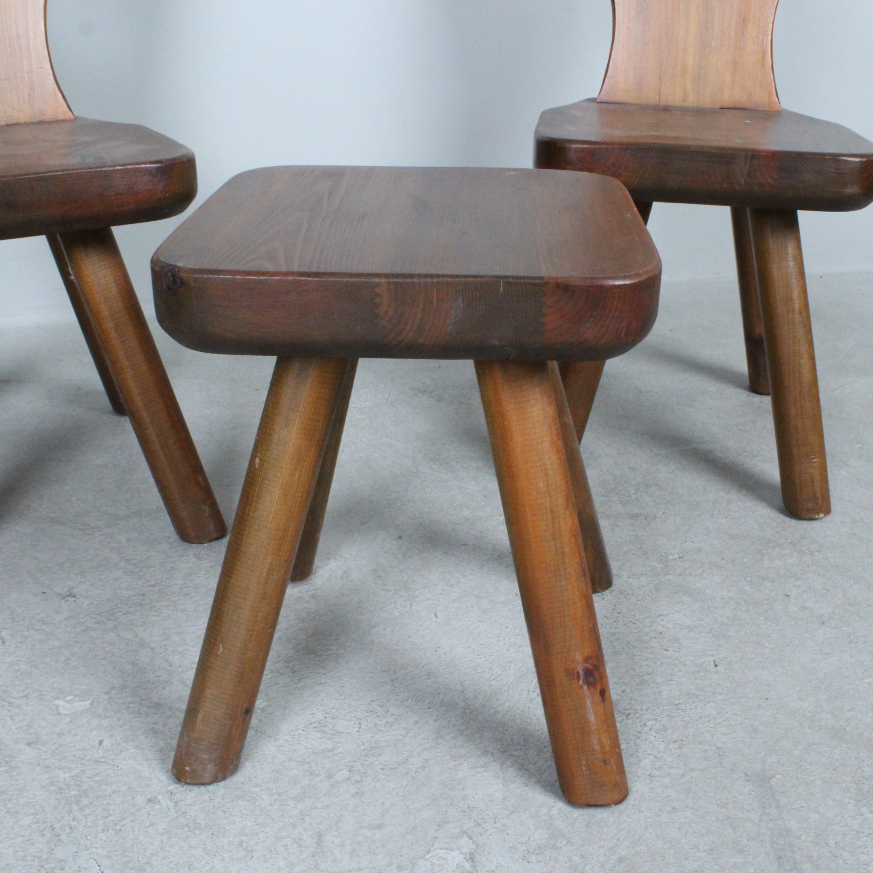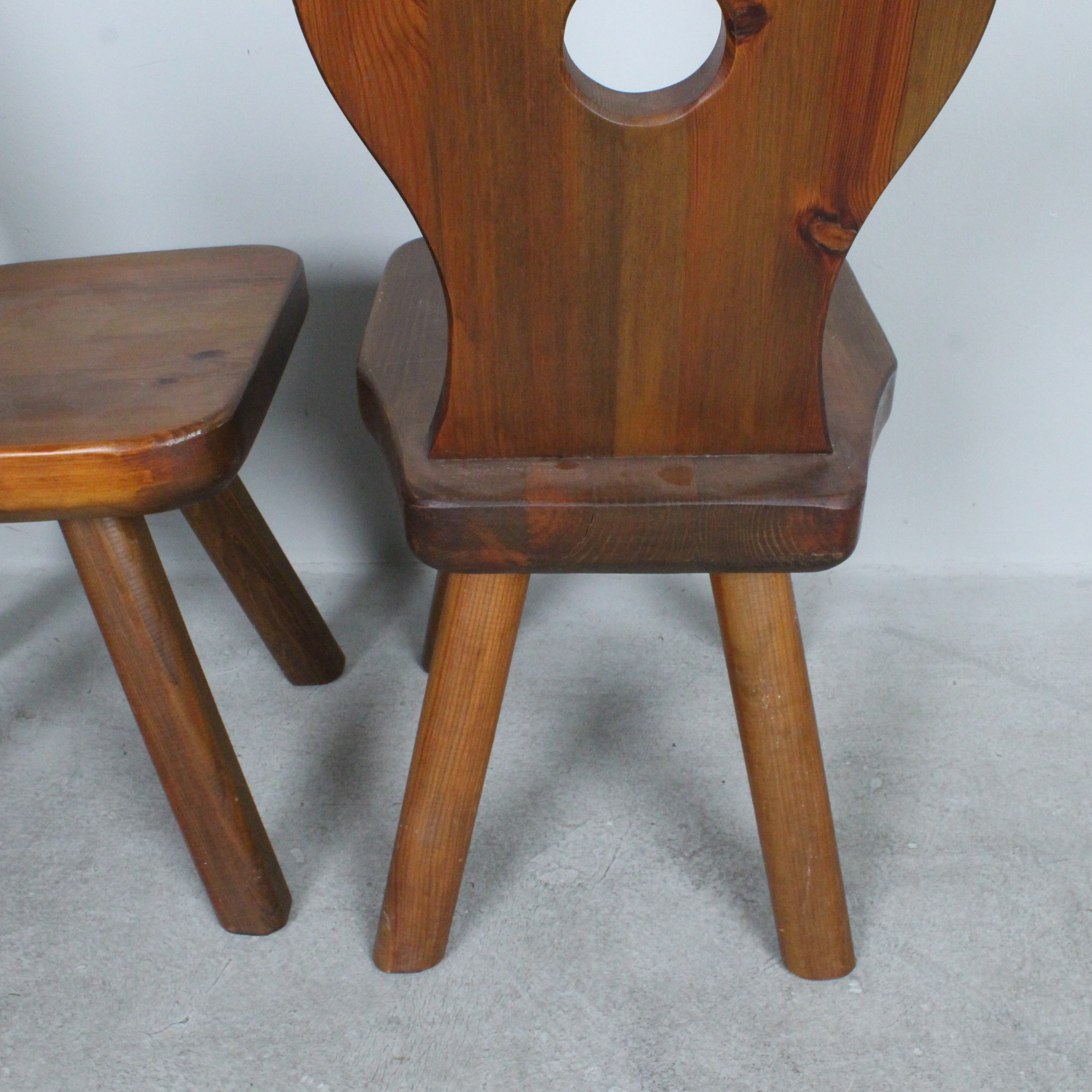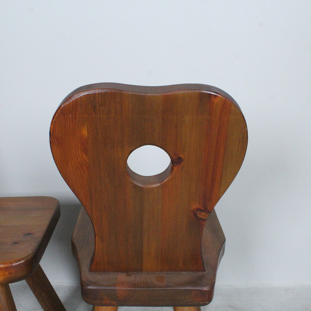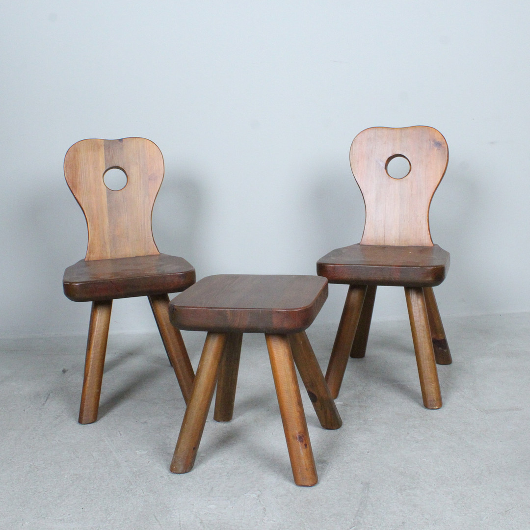 4335609. Brutalistische Stühle mit Hocker, Eiche, 1970er.