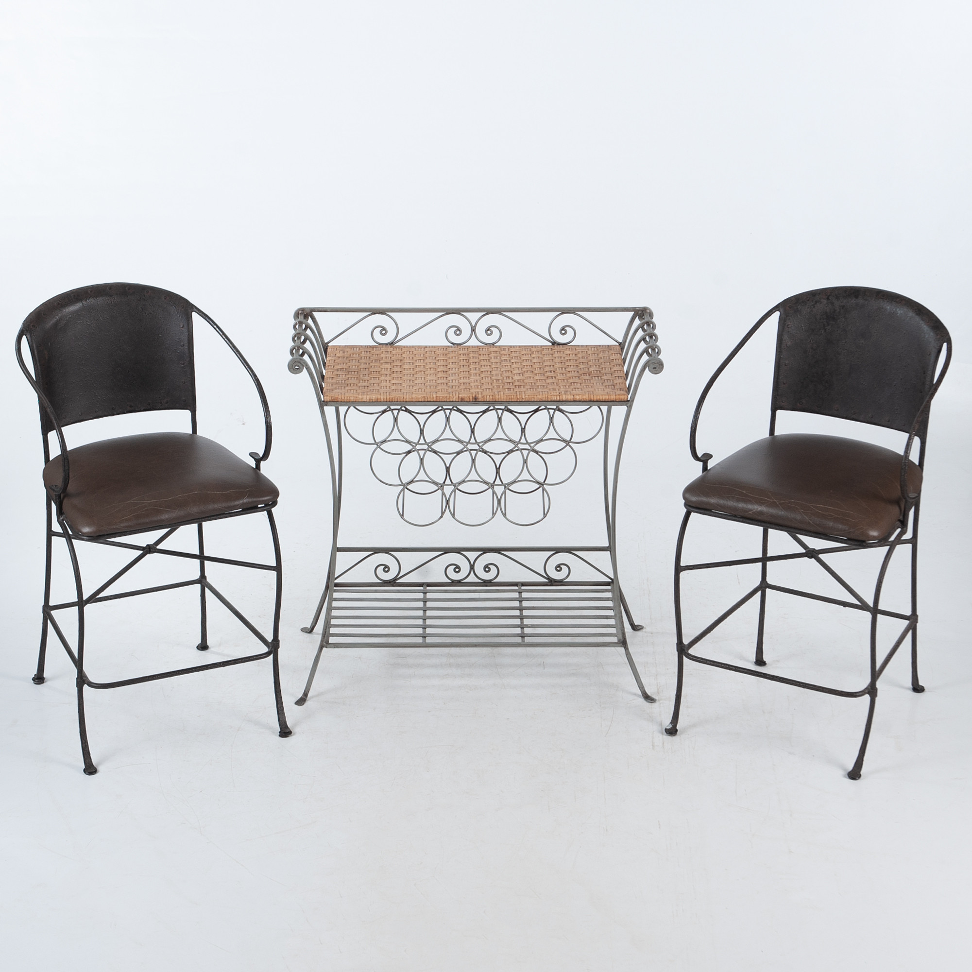 4337137. MINIBAR/WEINREGAL MIT 2 STÜHLEN, GESCHMIEDET.