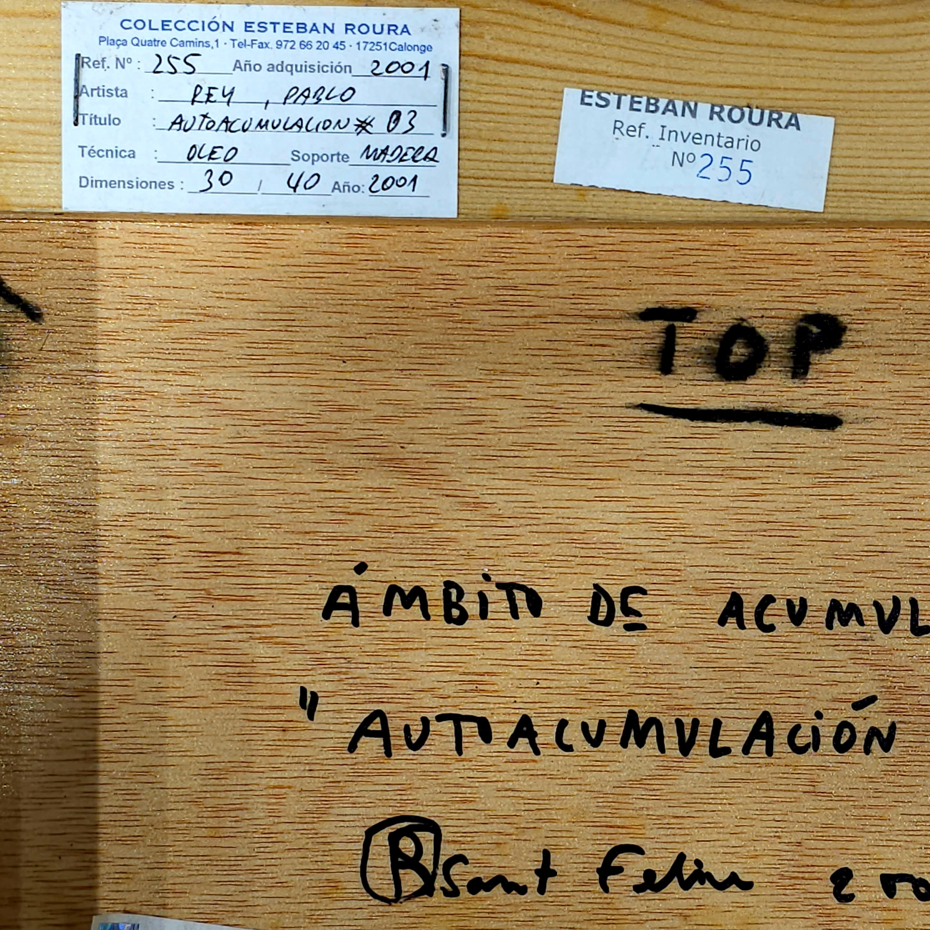 4338323. PABLO REY SENDÓN. „Akkumulation #03“. Öl auf dem Brett.
