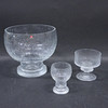 Kekkerit, zwei Schalen auf einem Fuß, Höhe 17,5 cm, Durchmesser 19 cm, 8 Likörgläser, Höhe 9 cm.