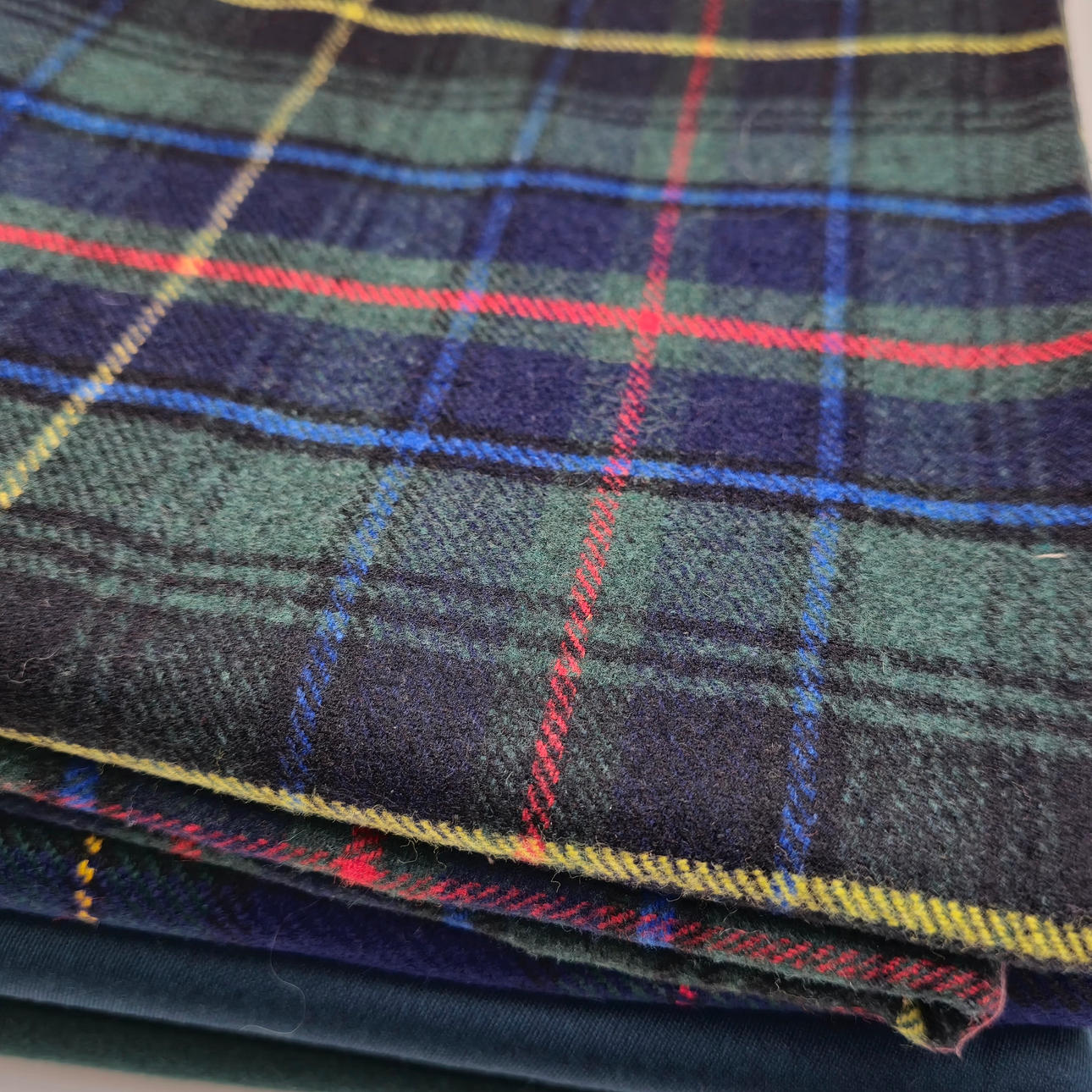 FILMSET AUS GRÜNER SCHOTTISCHER SCHOTTENWOLLE.