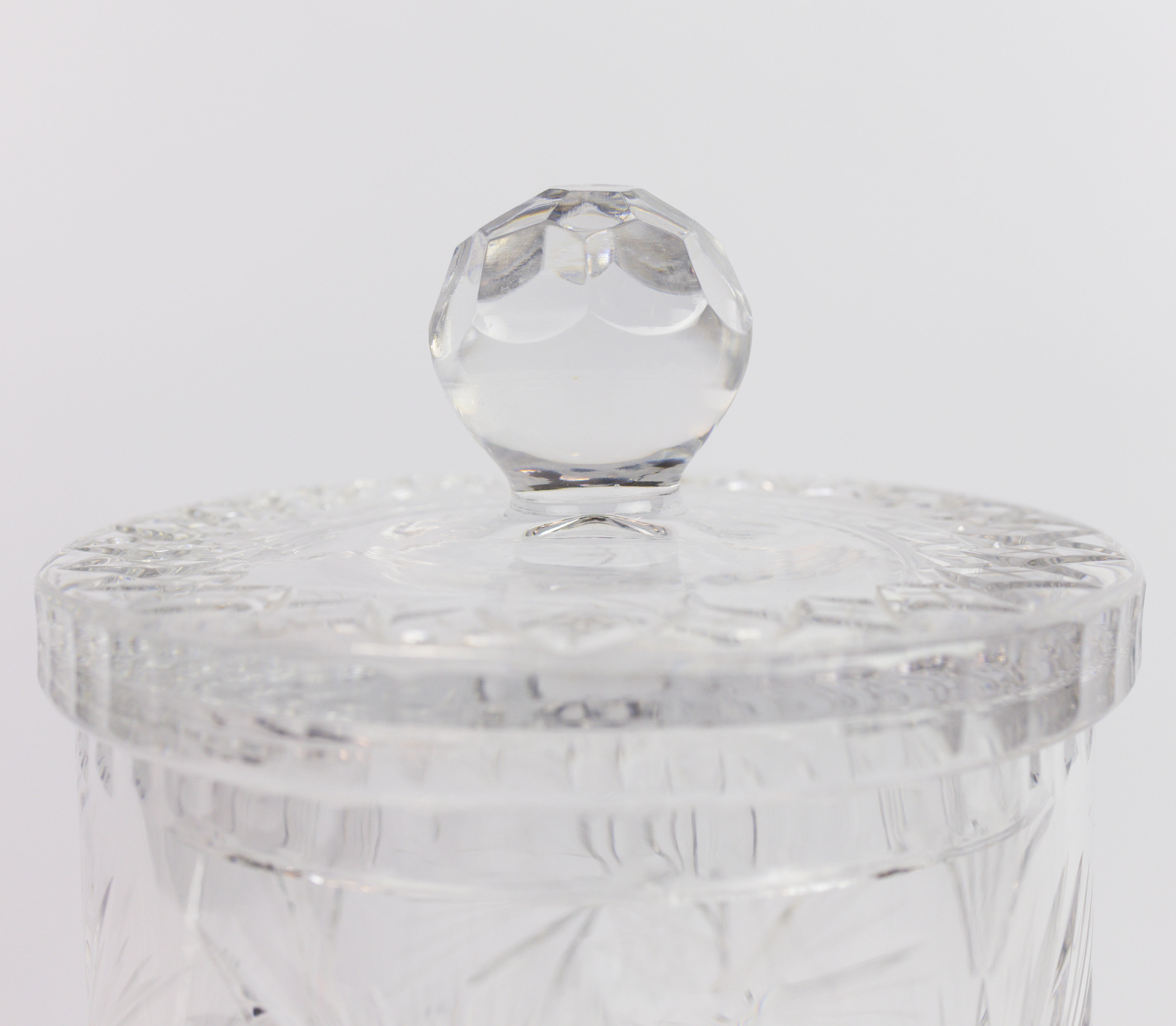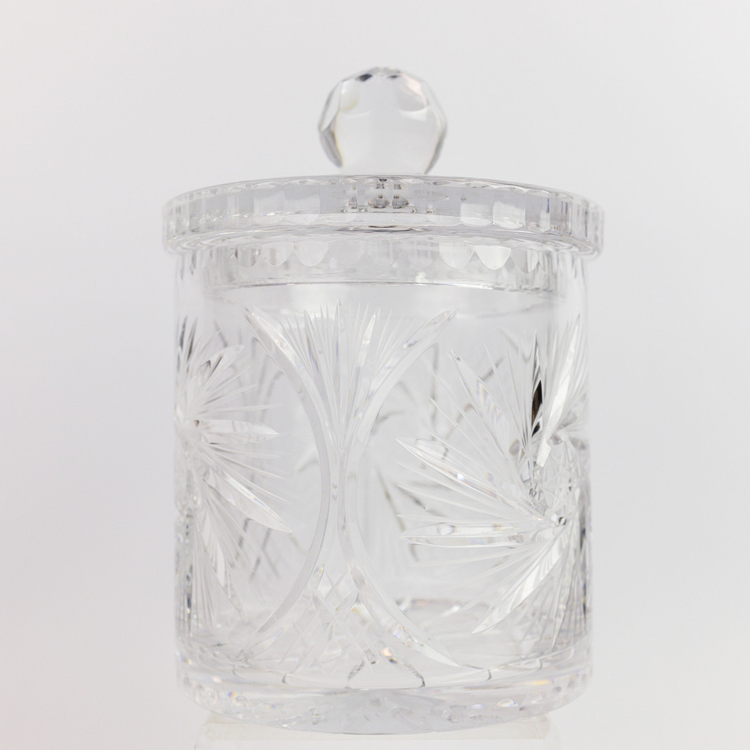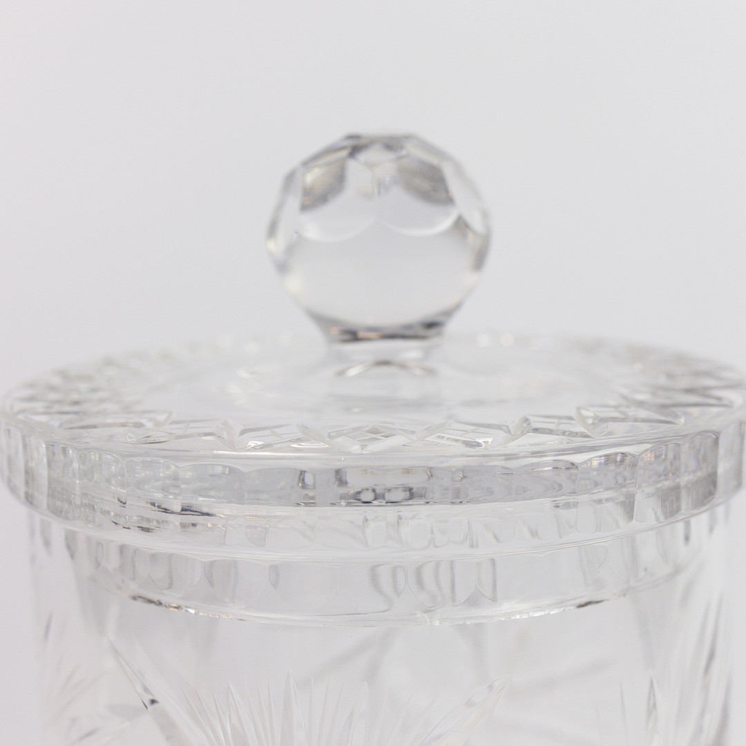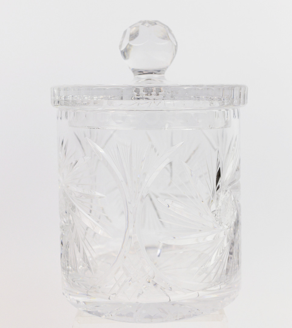 4338810. EINE KEKSDOSE MIT KRISTALLDECKEL IM BOHÈME-SCHLIFF.