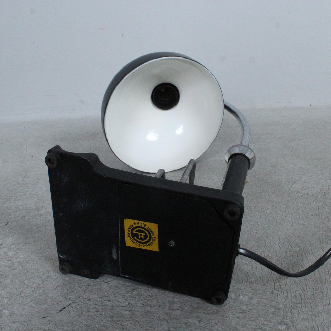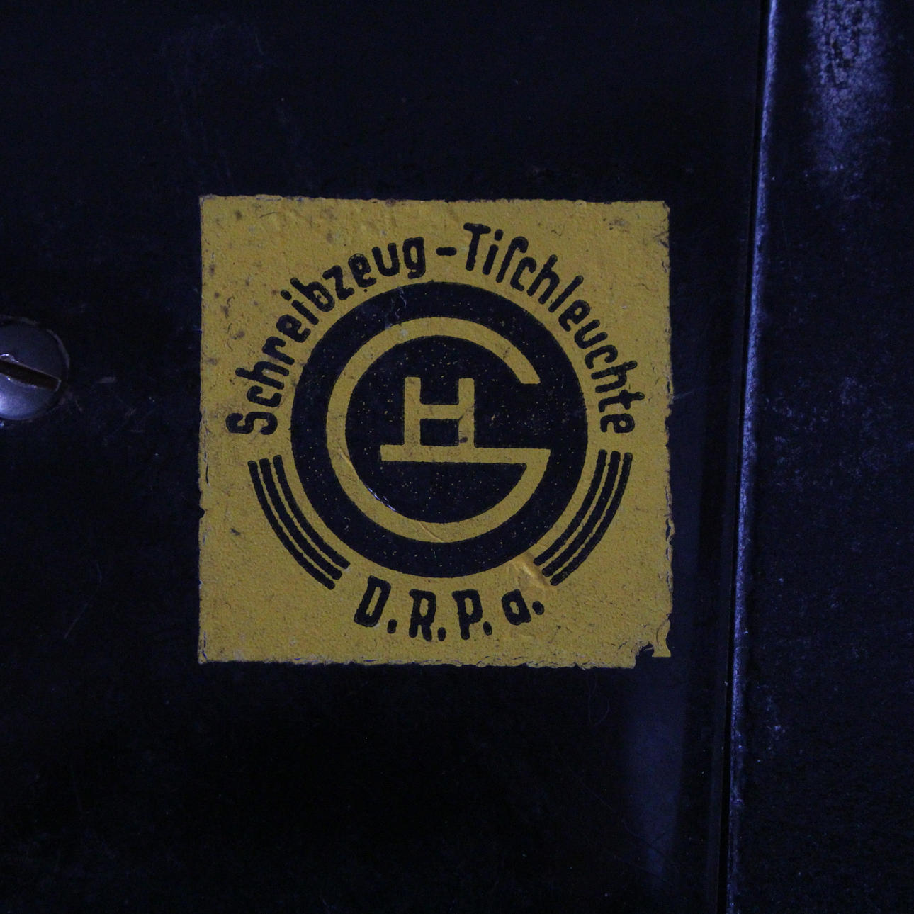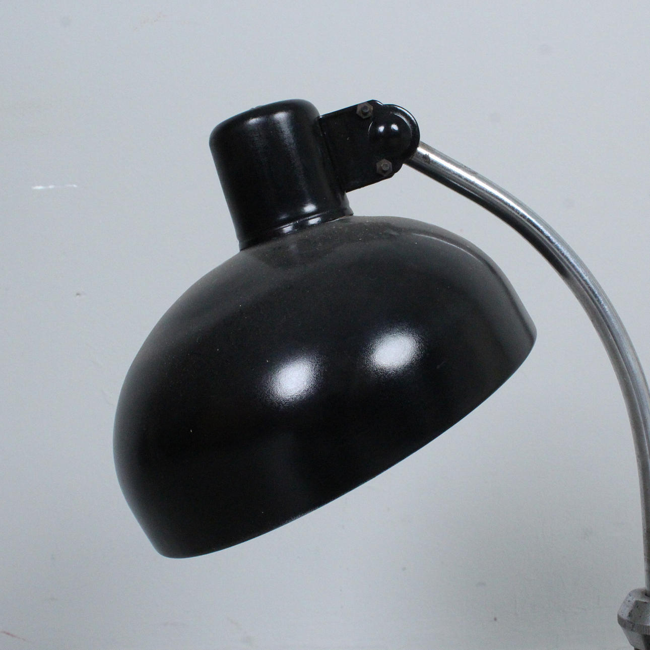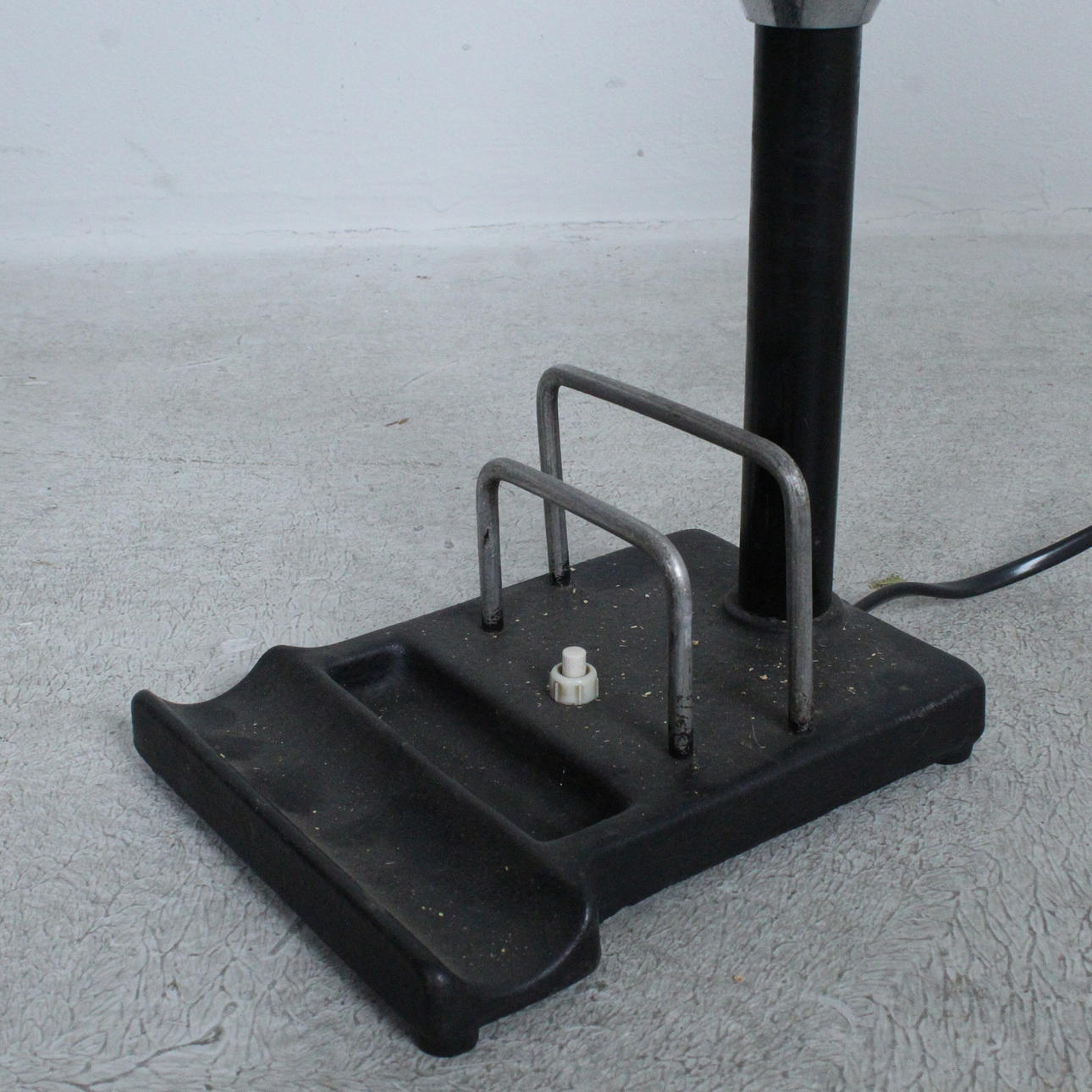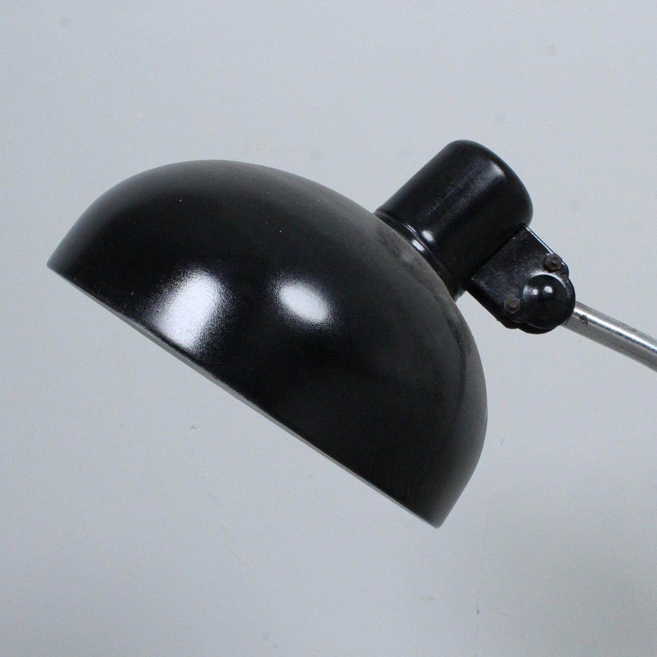 Konstruktion aus Metall, z.T. schwarz lackiert, Lampenschirm schwenkbar,