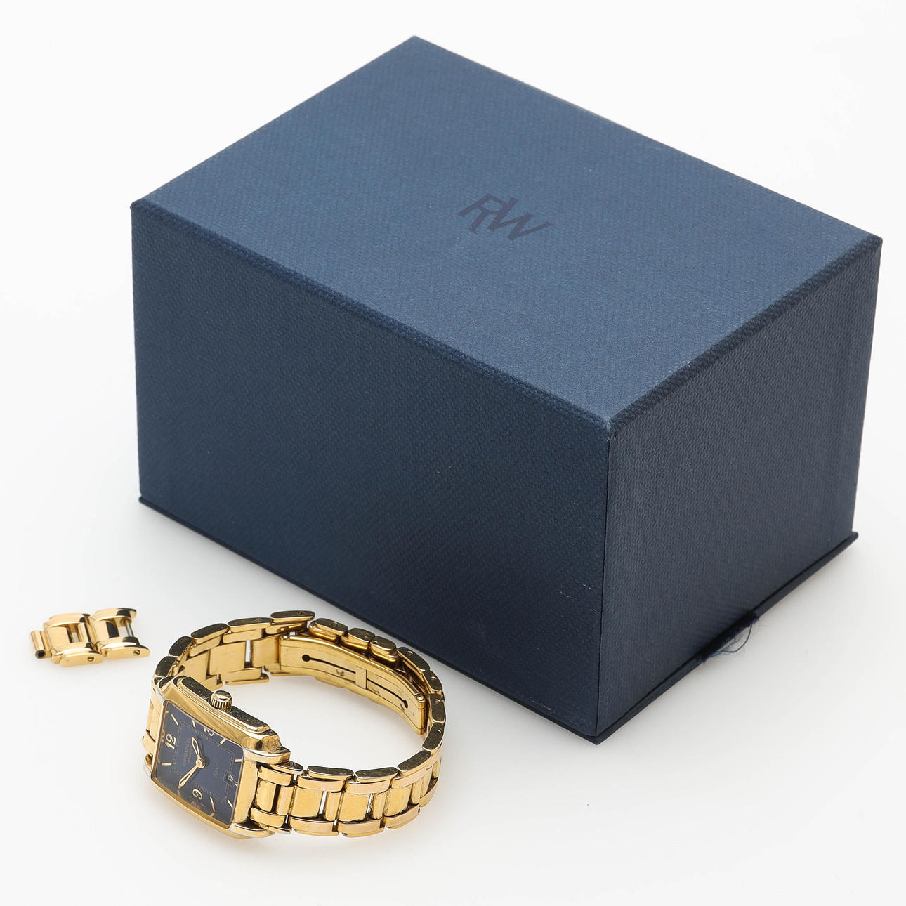 Gehäuse 24 x 32 mm aus vergoldetem Edelstahl.